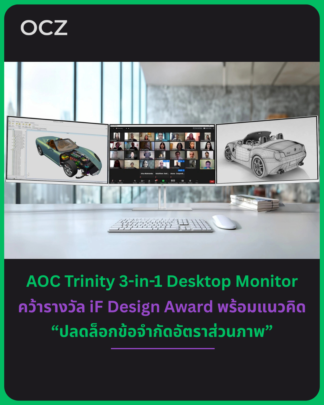 เพื่อตอบโจทย์การทำงานแบบมัลติทาสก์ของผู้ใช้จออัลตร้าไวด์ AOC ได้เปิดตัวโซลูชันแนวคิดใหม่ชื่อ Trinity ซึ่งเป็นรายแรกในอุตสาหกรรมที่นำแผงจอขนาด 24 นิ้ว จำนวน 3 จอ มาวางเรียงต่อกันในแนวนอน
