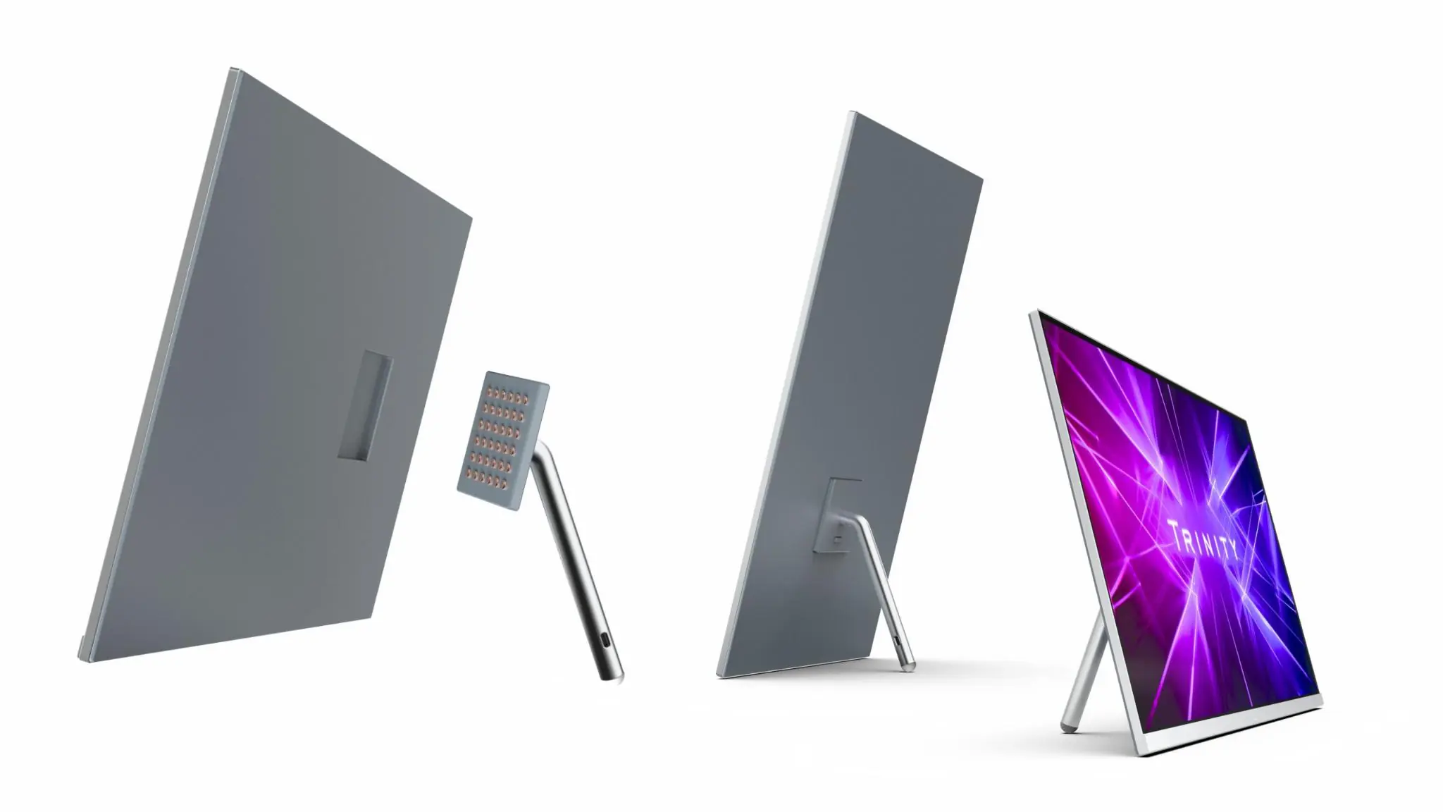 นอกจากนี้ แผงจอด้านซ้ายและขวายังรองรับการปรับเอียงได้ 30 องศา และมาพร้อมโครงสร้างแบบถอดเร็ว (quick-release) ทำให้สามารถถอดออกไปใช้งานแยกเป็นจอพกพาได้อย่างอิสระ