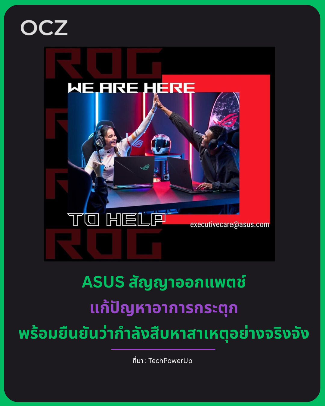 เราได้รับทราบรายงานล่าสุดเกี่ยวกับการหยุดชะงักของประสิทธิภาพในแล็ปท็อป ROG บางรุ่น และขอให้ทราบว่าทีมงานของเรากำลังตรวจสอบปัญหาเหล่านี้อย่างจริงจัง เราเข้าใจดีว่าการทำงานที่ลื่นไหลและเสถียรมีความสำคัญอย่างยิ่งสำหรับเครื่องสมรรถนะสูงเช่นนี้ และเรามุ่งมั่นที่จะมอบประสบการณ์นั้นให้กับคุณข้อมูลและข้อเสนอแนะจากคุณล้วนมีคุณค่าอย่างมาก และเราจะยังคงอัปเดตความคืบหน้าและให้การสนับสนุนผ่านช่องทางทางการของเรา
