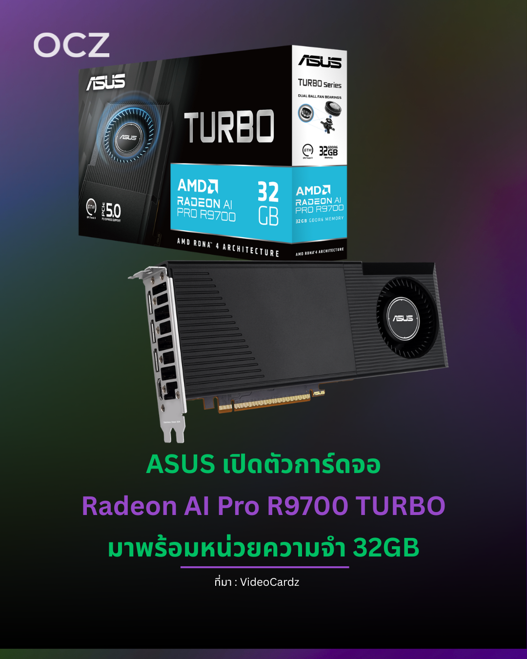 ASUS ได้เปิดตัวการ์ดจอ Turbo Radeon AI PRO R9700 อย่างเป็นทางการ นับเป็นรุ่นแรกของค่ายที่ใช้หัวต่อพลังงานมาตรฐานใหม่ 12V-2×6 ซึ่งก่อนหน้านี้ถูกนำมาใช้แล้วในการ์ด NVIDIA แต่เพิ่งจะปรากฏในฝั่ง Radeon เป็นครั้งแรก
