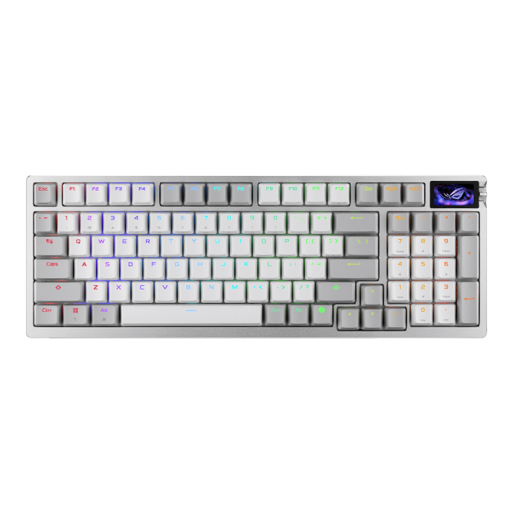 รุ่นนี้มาพร้อม สวิตช์แม่เหล็ก ROG HFX V2 และดีไซน์ เลย์เอาต์ 96% ขนาดกระทัดรัด โดยสวิตช์สามารถปรับ “จุดกดติด” (actuation point) ได้ตั้งแต่ 0.1 มม. ถึง 3.5 มม. พร้อมการปรับละเอียดระดับ 0.01 มม. เพื่อความแม่นยำสูงสุด