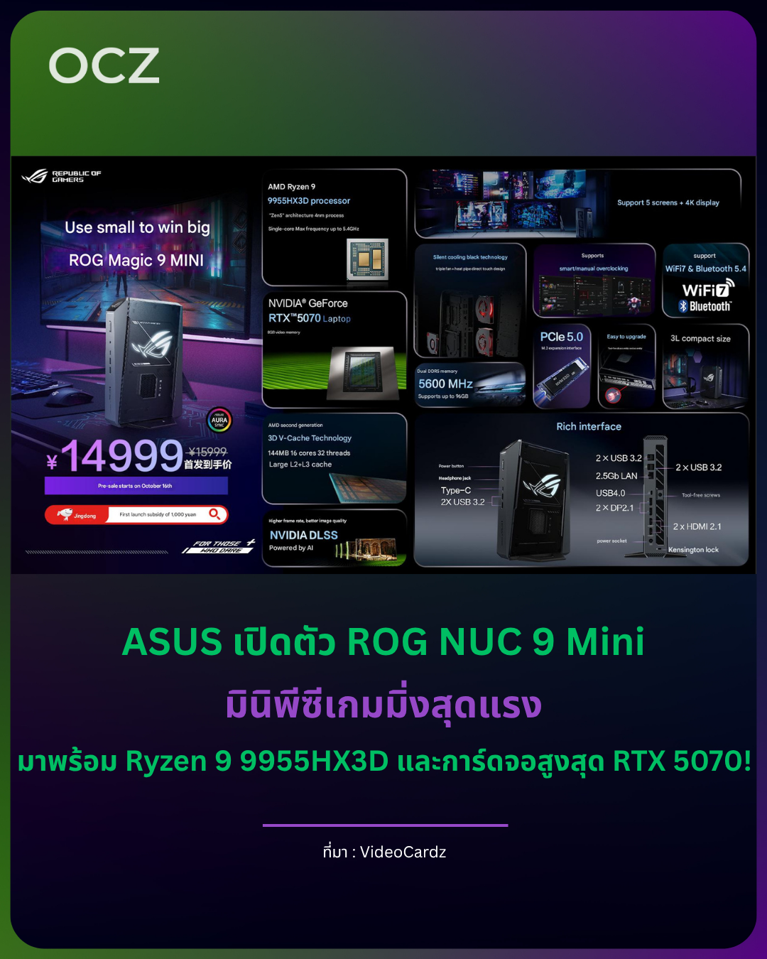 ASUS เปิดตัว ROG NUC 9 MINI — มินิพีซีเกมมิ่งแรงเต็มพลังด้วย Ryzen 9 9955HX3D และ RTX 5070