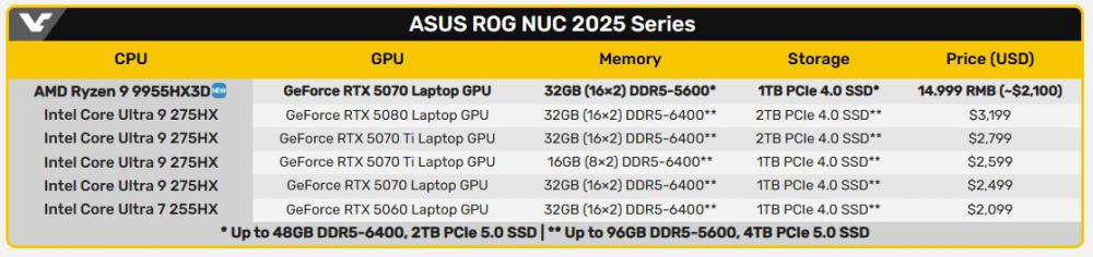 อย่างไรก็ตาม กราฟิก ของรุ่นนี้จะลดหลั่นลงจากรุ่นที่ใช้ Intel ในซีรีส์ ROG NUC — รุ่น Core Ultra 9 200-series รองรับ RTX 5080 แต่เวอร์ชัน AMD จะจำกัดอยู่ที่ RTX 5070 Laptop GPU ซึ่งสอดคล้องกับแนวทางของ ASUS ที่ยังให้ความสำคัญกับเซ็ตอัพ Intel มากกว่า เนื่องจาก ASUS สืบทอดแบรนด์ NUC มาจาก Intel