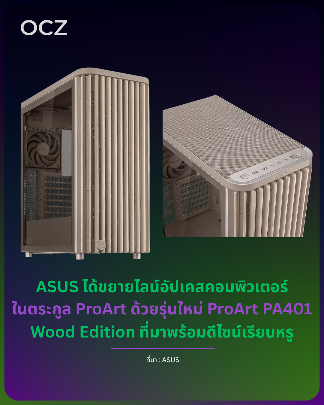 ASUS เปิดตัวเคส ProArt PA401 Wood Edition Beige สำหรับเครื่องเดสก์ท็อปสายครีเอเตอร์ โดยรุ่นใหม่นี้เป็น เวอร์ชันสีเบจ ของ PA401 Wood Edition ที่เปิดตัวครั้งแรกในเดือนธันวาคม 2024
