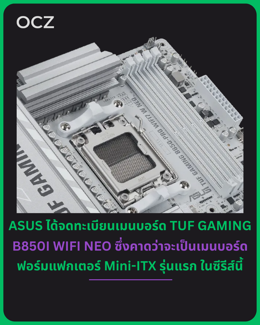 สำหรับ TUF GAMING B850I WIFI NEO นั้น คาดว่าจะเป็นเมนบอร์ดฟอร์มแฟกเตอร์ Mini-ITX รุ่นแรก ในตระกูล TUF GAMING
