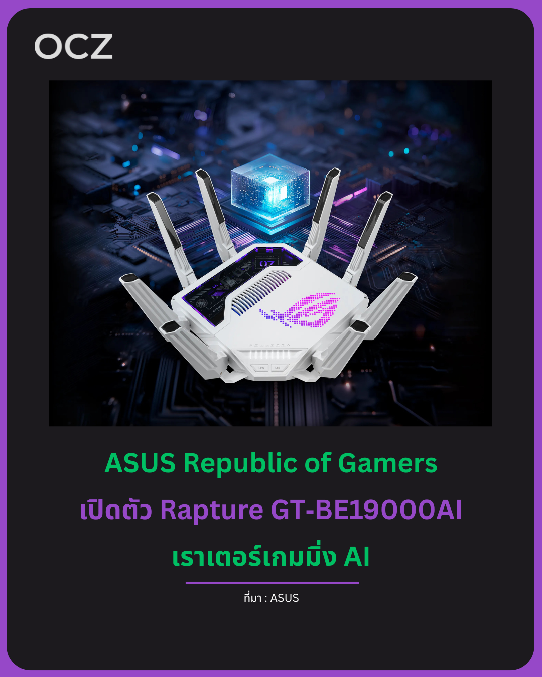 ASUS Republic of Gamers เปิดตัว ROG Rapture GT-BE19000AI — เราเตอร์เกมมิ่ง AI ตัวแรกของโลก