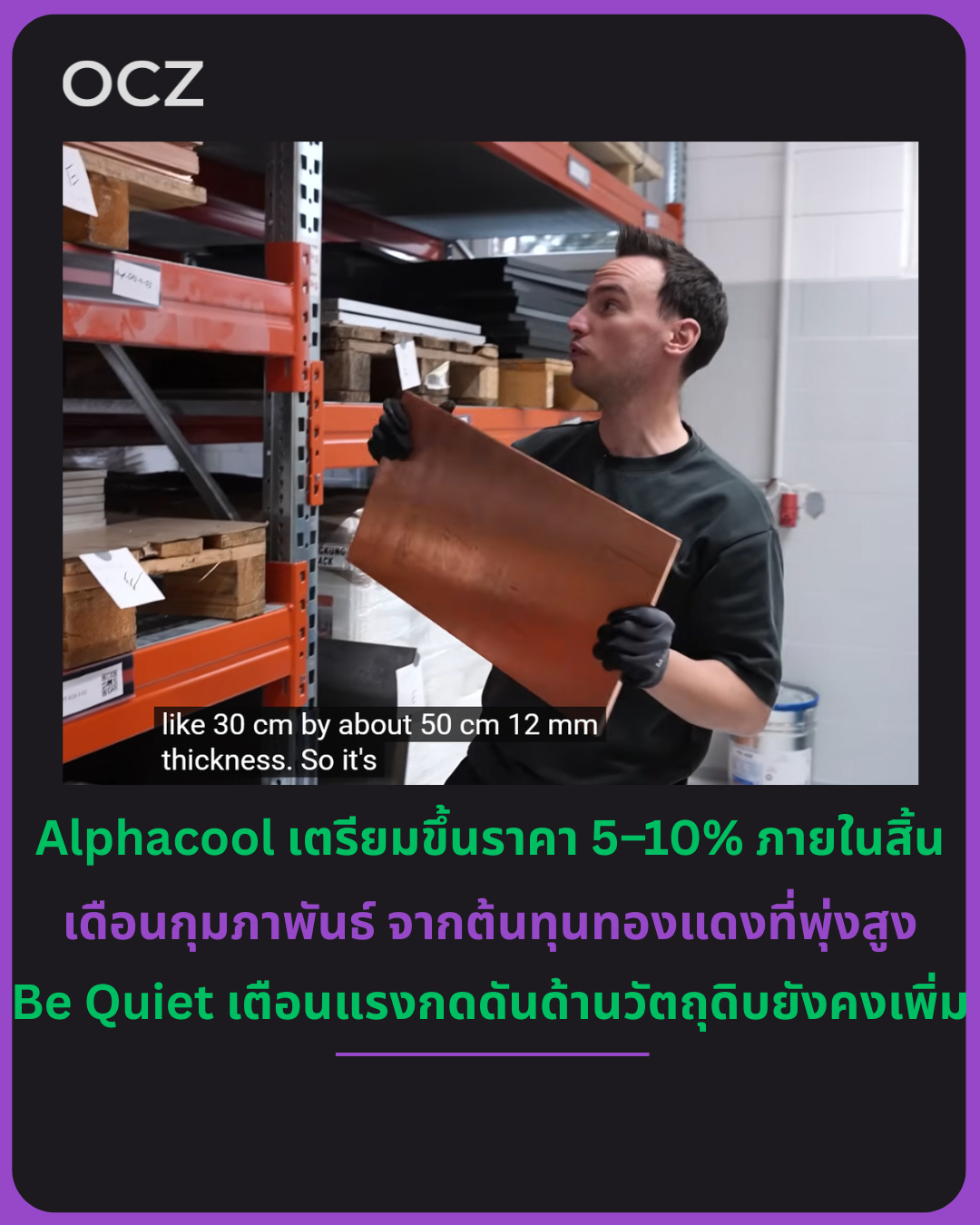 ในวิดีโอใหม่ Roman “der8auer” Hartung ยูทูบเบอร์ชื่อดังและซีอีโอของ Thermal Grizzly ออกมาเปิดเผยว่า ราคาทองแดงและดีบุกเริ่มส่งผลกระทบต่อซัพพลายและต้นทุนการผลิตฮาร์ดแวร์พีซีอย่างชัดเจน ทั้งในด้านระยะเวลาการจัดส่งที่ยาวขึ้น และราคาวัตถุดิบที่ปรับสูงขึ้น โดยเฉพาะวัสดุที่ใช้กับชิ้นส่วนระบบระบายความร้อนซึ่งต้องผ่านการผลิตด้วยเครื่อง CNC