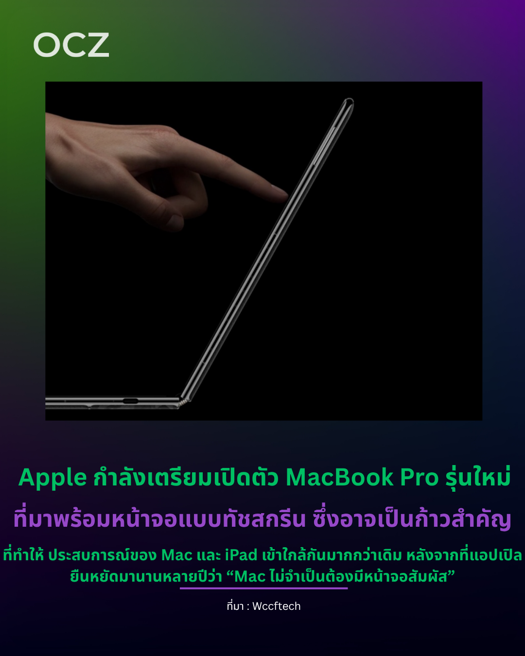 แอปเปิลอาจเตรียมทำในสิ่งที่ตนเอง “ปฏิเสธมาตลอดหลายปี” นั่นคือการเปิดตัว MacBook แบบหน้าจอทัชสกรีน โดยข้อมูลจาก Mark Gurman ในจดหมายข่าว Power On ระบุว่า บริษัทกำลัง “เดินหน้าสู่การเปิดตัว MacBook Pro ที่รองรับการสัมผัสหน้าจอ” ซึ่งถือเป็นการเปลี่ยนปรัชญาครั้งใหญ่ หลังจากที่ผ่านมา Apple ยืนกรานมาตลอดว่า “ทัชสกรีนเหมาะกับ iPad ไม่ใช่ Mac”