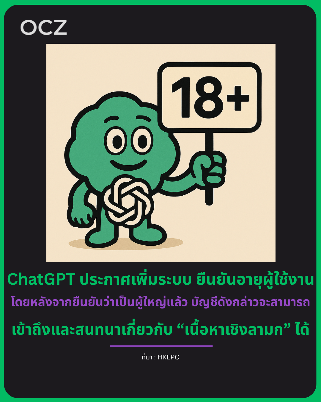 Sam Altman ซีอีโอของ OpenAI ได้โพสต์บนโซเชียลมีเดียว่า ChatGPT จะเปิดใช้ระบบ ยืนยันอายุผู้ใช้ภายในเดือนธันวาคมนี้ โดยผู้ใช้ที่ผ่านการยืนยันว่าเป็นผู้ใหญ่จะสามารถเข้าถึง “เนื้อหาที่หลากหลายมากขึ้น” ได้