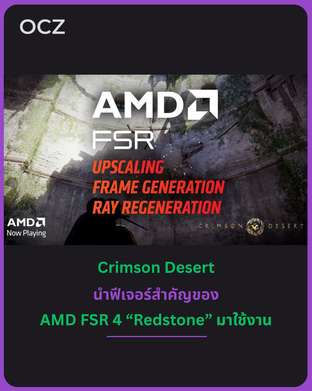 กล่าวได้ว่า Crimson Desert เป็นหนึ่งในเกมแรก ๆ ที่แสดงศักยภาพเต็มรูปแบบของ FSR 4 บนฮาร์ดแวร์เจเนอเรชันใหม่ของ AMD.