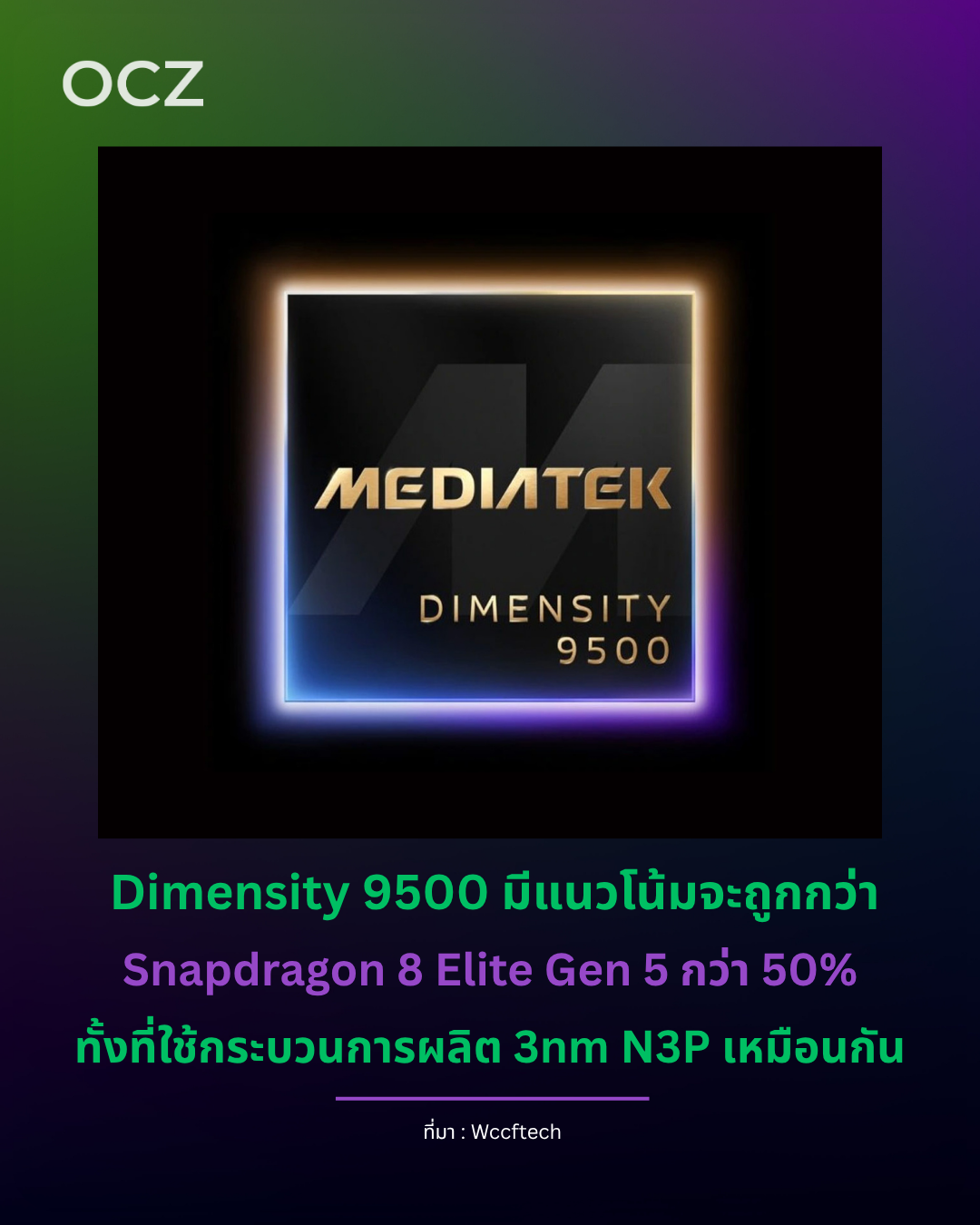 และในปี 2025 ประวัติศาสตร์ก็ซ้ำรอยอีกครั้ง — เพราะมีการเปิดเผยราคาต่อหน่วยของ Dimensity 9500 ออกมาแล้ว ว่ามัน “ถูกกว่า Snapdragon 8 Elite Gen 5 กว่า 50%” โดยรุ่นของ Qualcomm มีราคาสูงถึง $280 ในขณะที่ Dimensity 9500 อยู่ในช่วง $180–$200 เท่านั้น