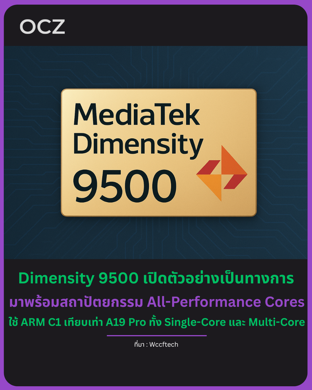 MediaTek ยืนยันความเหนือกว่าของตัวเองเหนือ Qualcomm ด้วยการเปิดตัว Dimensity 9500 ชิปที่ผลิตจำนวนมากบนสถาปัตยกรรม 3 นาโนเมตร “N3P” ของ TSMC มาพร้อมประสิทธิภาพและความประหยัดพลังงานที่สูงขึ้นอย่างมาก โดยใช้ ARM C1 cores เจเนอเรชันใหม่ ทำให้ประสิทธิภาพทั้ง single-core และ multi-core เทียบเท่า Apple A19 Pro