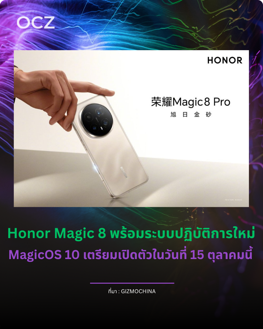 Honor ยืนยันอย่างเป็นทางการแล้ว ว่าจะเปิดตัว ซีรีส์ Magic 8 ในวันที่ 15 ตุลาคมนี้ ที่ประเทศจีน พร้อมกับอุปกรณ์ใหม่อีกหลายรุ่นในงานเดียวกัน โดยไลน์อัปที่เตรียมเปิดตัวประกอบด้วย Honor Magic 8 และ Magic 8 Pro ซึ่งทั้งคู่จะมาพร้อมกับ MagicOS 10 ระบบปฏิบัติการใหม่ของบริษัทที่พัฒนาบนพื้นฐานของ Android 16