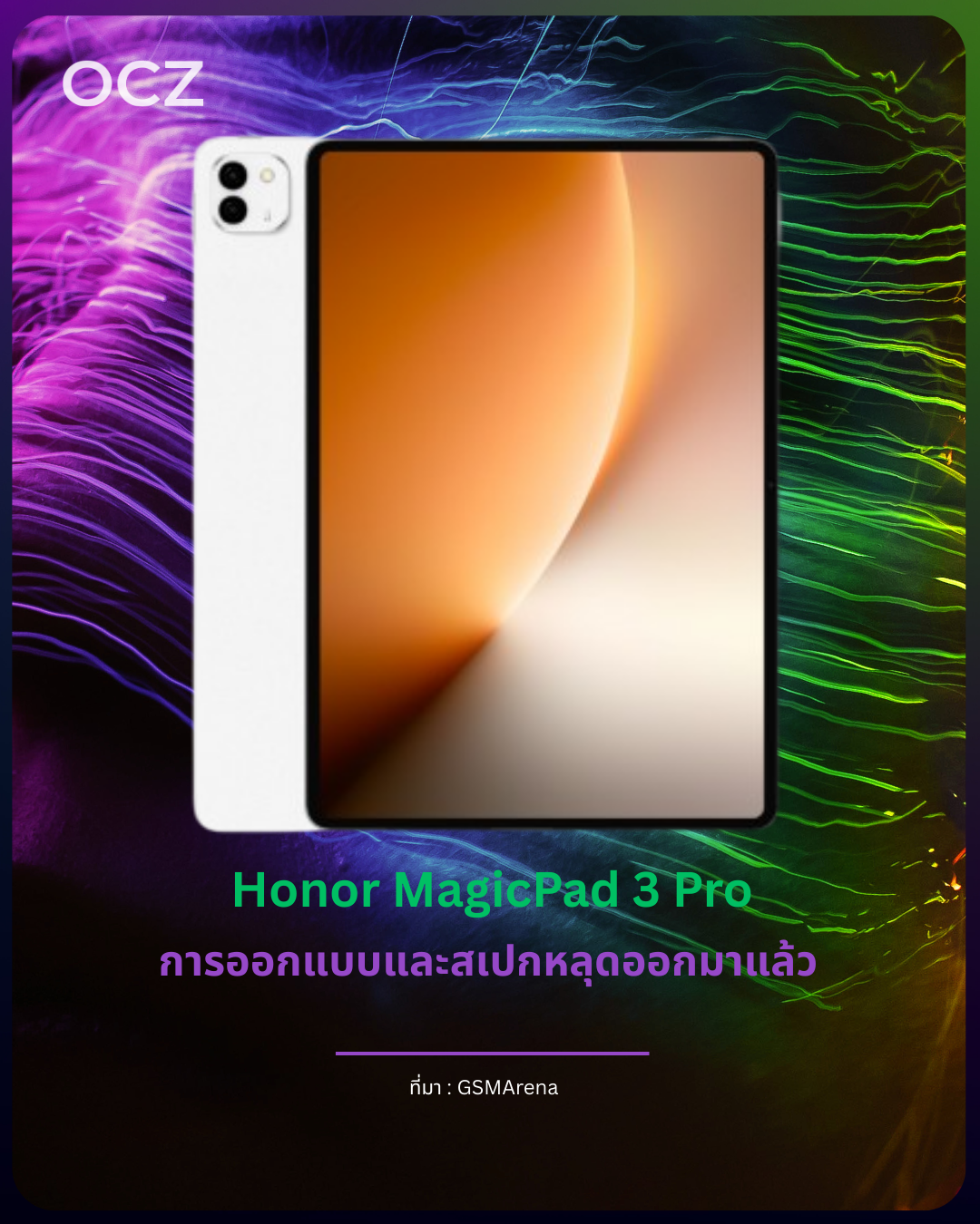 แท็บเล็ต Honor MagicPad 3 Pro คาดว่าจะเปิดตัวในเดือนหน้าที่ประเทศจีน พร้อมกับ ซีรีส์ Magic8 ก่อนการเปิดตัวอย่างเป็นทางการ มีข้อมูลสเปกและดีไซน์หลุดออกมาให้ชมกัน