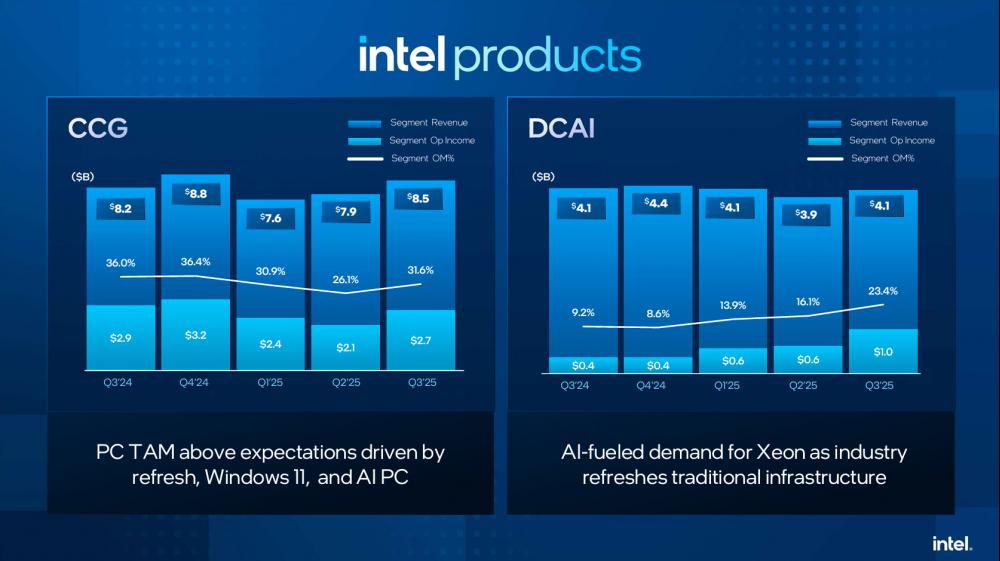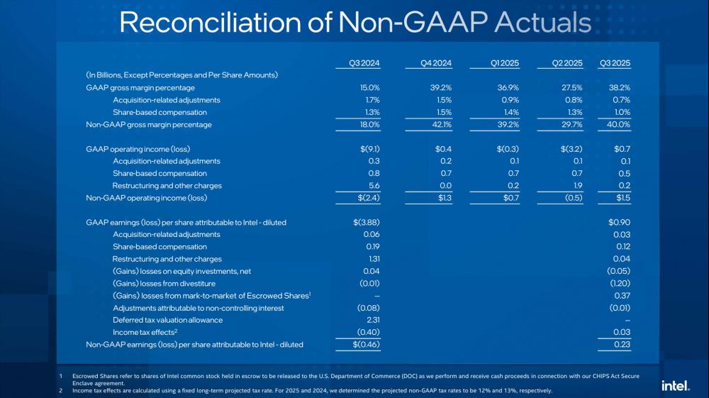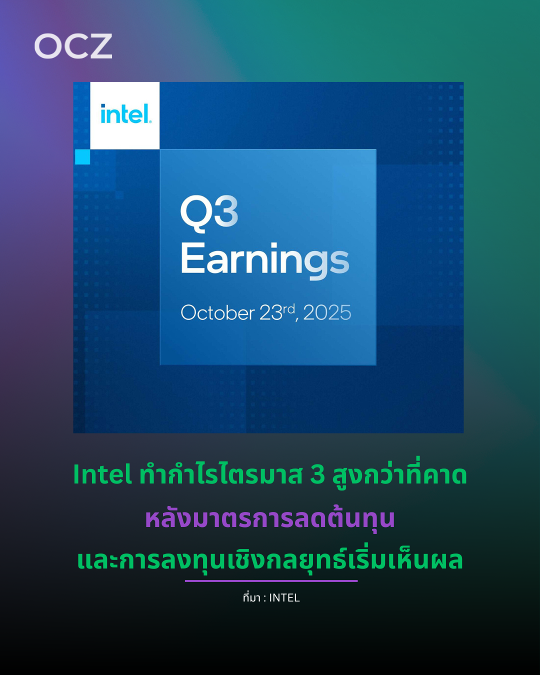 Intel รายงานผลประกอบการไตรมาส 3 ปี 2025 แข็งแกร่งเกินคาด จากมาตรการลดต้นทุนเชิงรุกภายใต้การนำของซีอีโอ Lip-Bu Tan และการอัดฉีดเงินลงทุนรอบใหม่จาก NVIDIA, SoftBank และรัฐบาลสหรัฐฯ ส่งผลให้หุ้น Intel ดีดขึ้นราว 5% หลังจากราคาหุ้นร่วงไปกว่า 60% ในปีก่อน