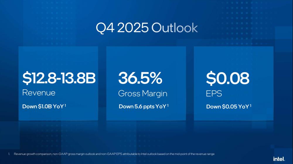 สำหรับไตรมาส 4 ปี 2025 Intel คาดรายได้อยู่ระหว่าง 12.8 – 13.8 พันล้านดอลลาร์
