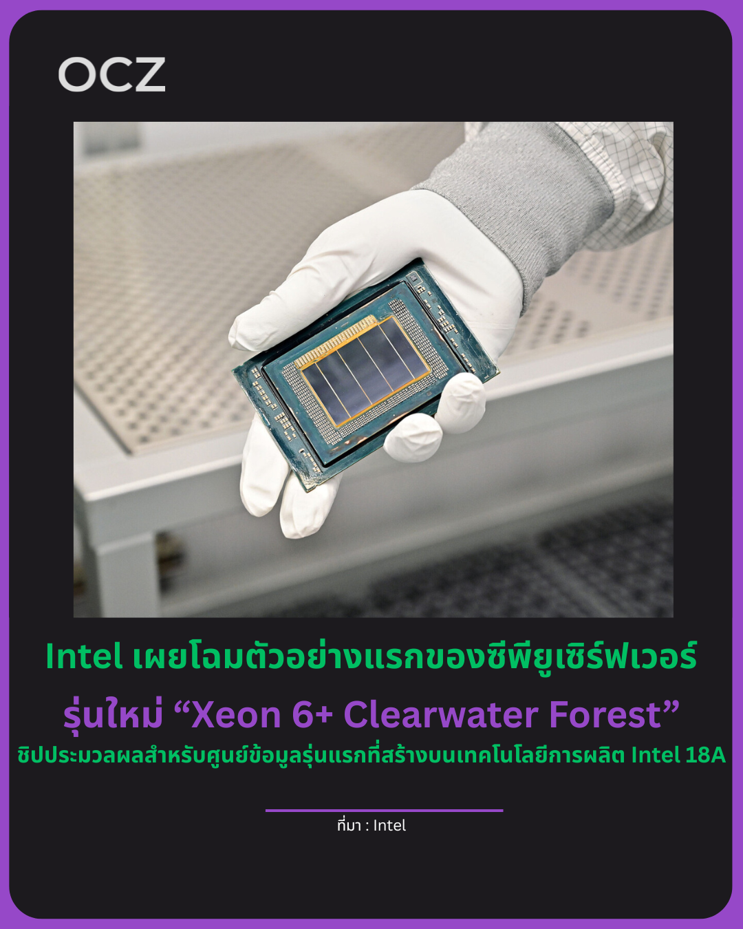อินเทลได้เผยโฉมซีพียูเซิร์ฟเวอร์รุ่นแรกที่ใช้กระบวนการผลิต Intel 18A ในชื่อ Xeon 6+ “Clearwater Forest” ภายในงาน Technology Tour ปีนี้ โดยคาดว่าจะเปิดตัวอย่างเป็นทางการในช่วงครึ่งแรกของปี 2026