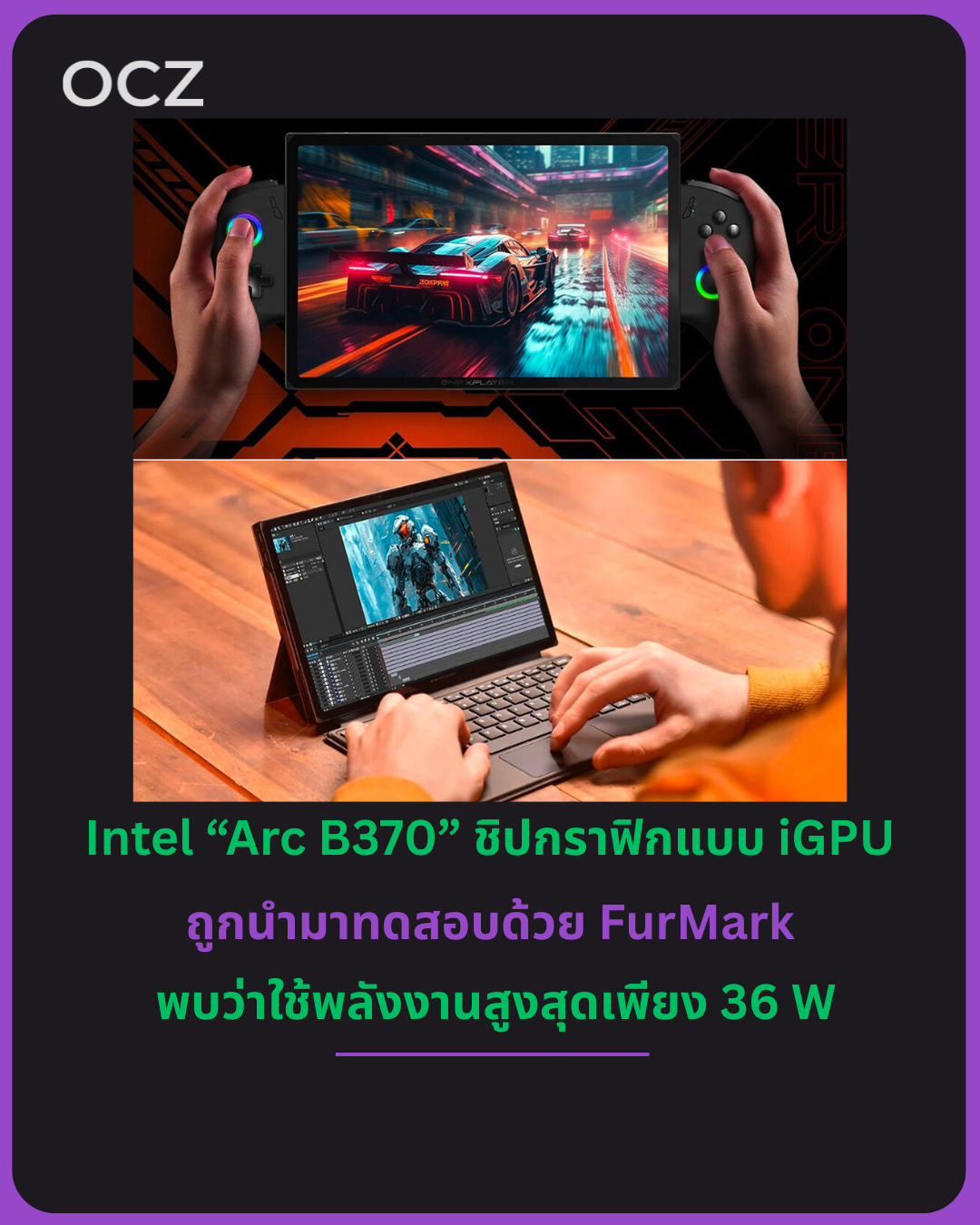 iGPU Xe3 ทำคะแนนได้ 2383 คะแนนใน FurMark โดยมี ความเร็วบูสต์สูงสุดราว 2300 MHz และใช้พลังงานสูงสุด ประมาณ 36W — ซึ่งอาจเป็นการใช้พลังงานรวมของทั้ง APU