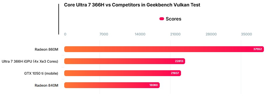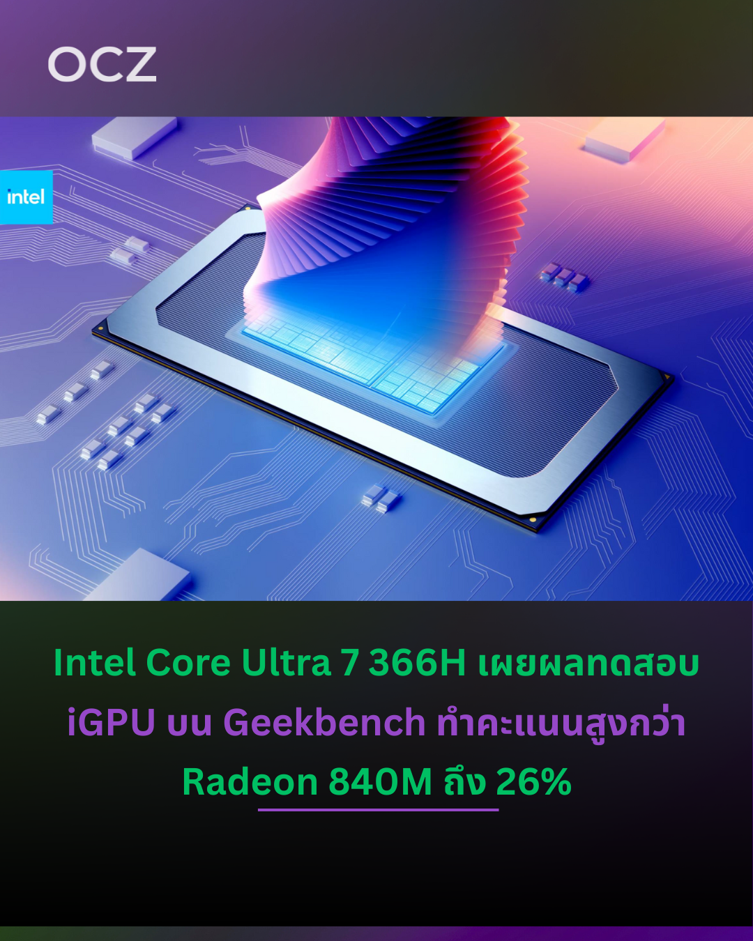 Core Ultra 7 366H โผล่บน Geekbench พร้อมสเปกและประสิทธิภาพ iGPU ที่แรงพอจะสู้ GTX 1050 Ti ได้