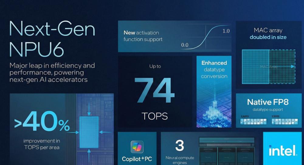 การที่ Intel อัปเกรด NPU ในสถาปัตยกรรม Nova Lake นั้นเริ่มมีสัญญาณมาตั้งแต่เดือนก่อน หลังจากมีแพตช์ของคอมไพเลอร์ยืนยันว่าชิปเดสก์ท็อปรุ่นใหม่จะใช้ NPU 6 แต่ก่อนหน้านี้ยังไม่รู้ว่าจะตั้งเป้าประสิทธิภาพไว้เท่าไร กระทั่งข้อมูลหลุดล่าสุดมาเฉลย