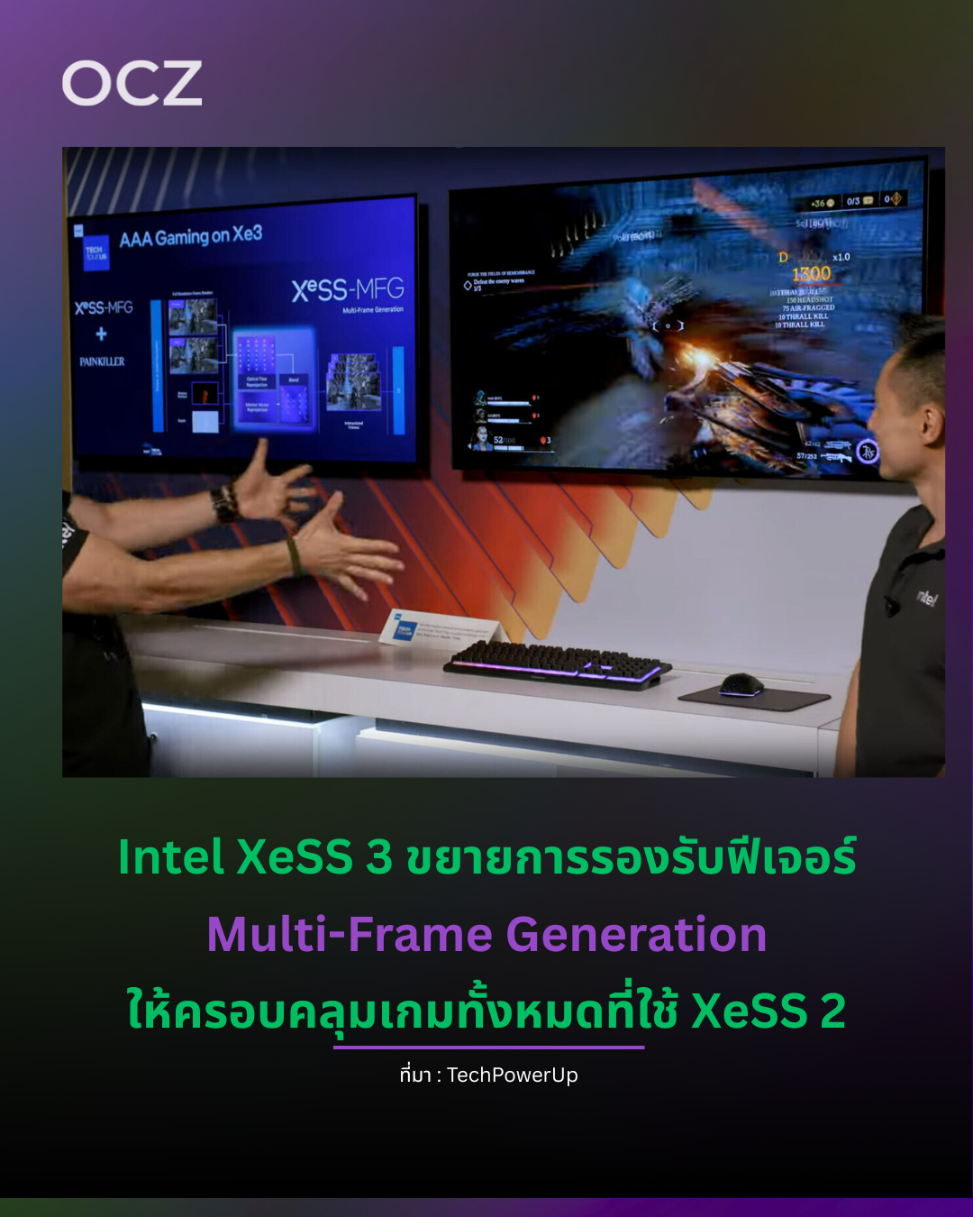 อินเทลเดินหมากได้อย่างน่าสนใจ เมื่อประกาศว่าจะรองรับ XeSS 3 ในเกมทั้งหมดที่ใช้ XeSS 2 อยู่แล้ว โดยได้รับการยืนยันจาก Tom Petersen หนึ่งในผู้บริหารระดับสูงของบริษัท การอัปเดตใหม่นี้จะยกระดับเทคโนโลยี super resolution ของอินเทลให้มีฟีเจอร์ Multi-Frame Generation (MFG) ซึ่งจะเปิดให้ใช้งานก่อนที่ AMD จะปล่อยฟีเจอร์คู่แข่งในลักษณะเดียวกันออกมา