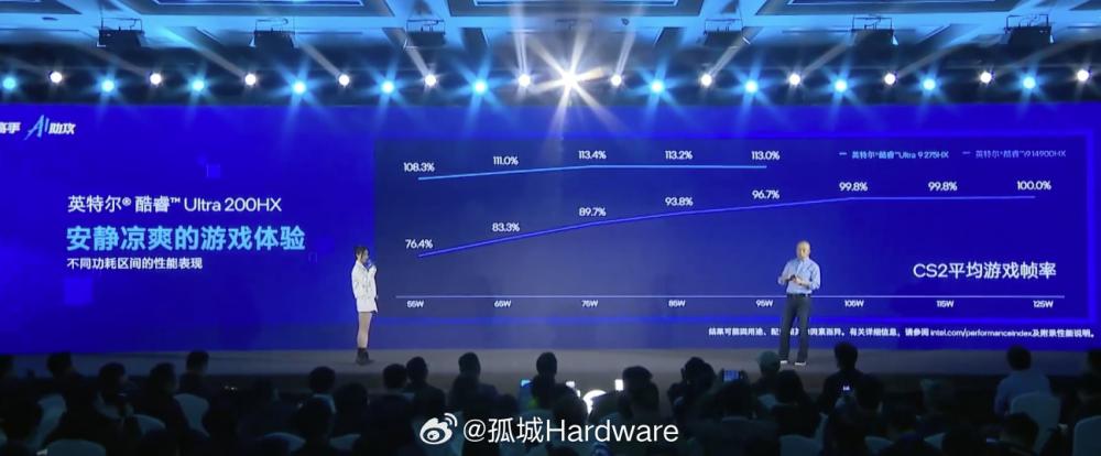ซีพียู Arrow Lake ได้รับการประกาศในงาน CES 2025 โดยเฉพาะรุ่น H และ HX ซึ่งทราบรายละเอียดสเปกแล้ว Intel ได้แชร์สไลด์เดียวกันที่เผยแพร่ไปแล้วเมื่อช่วงเดือนมกราคม แต่มีสไลด์ใหม่บางอันที่น่าสนใจที่จะแชร์ ตัวอย่างเช่น Intel ได้แชร์แผนภูมิประสิทธิภาพใหม่ซึ่งบริษัทระบุว่าประสิทธิภาพการใช้พลังงานดีขึ้น 40% เมื่อเทียบกับรุ่นก่อนหน้า ในเกม Counter Strike 2 ที่ Intel ได้สาธิตให้เห็นว่าโปรเซสเซอร์ Core Ultra 9 275HX ใหม่ล่าสุดมอบประสิทธิภาพ 108% ของรุ่น Core i9-14900HX รุ่นก่อนหน้าที่ 125W อย่างเป็นทางการ Intel อ้างว่ามีประสิทธิภาพสูงกว่า 10% ในเวิร์กโหลดแบบเธรดเดียวเมื่อเทียบกับ 14900HX และสูงกว่า 19% ในเวิร์กโหลดแบบมัลติเธรด Intel แบ่งรายละเอียดออกเป็นแอปเฉพาะ