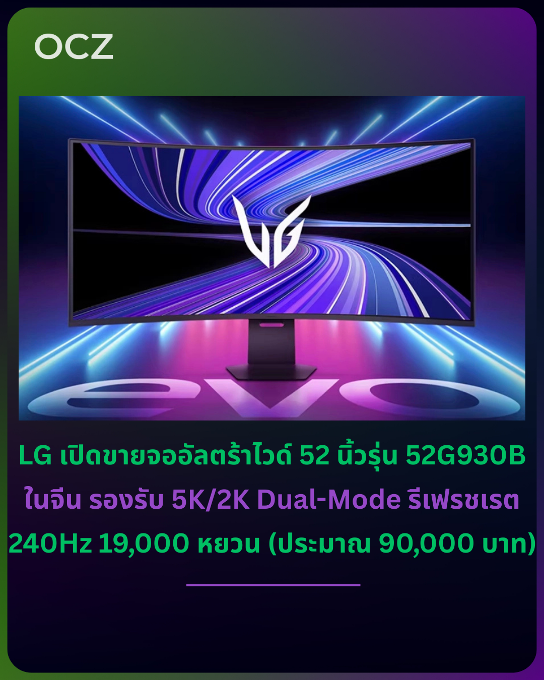 จอ LG 52G930B ขนาด 52 นิ้ว ของ LG Electronics เปิดให้ พรีออเดอร์แล้วบน Taobao ในประเทศจีน โดยรองรับโหมด 5K/2K แบบ Dual-Mode และมีราคาอยู่ที่ประมาณ 19,000 หยวน พร้อมถูกโปรโมตว่าเป็น จอ 5K/2K แบบ Dual-Mode ที่มีขนาดใหญ่ที่สุดในโลก
