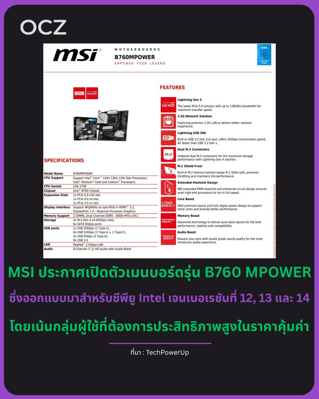 เนื่องจากแพลตฟอร์ม LGA1700 ยังคงได้รับความนิยมในหมู่เกมเมอร์ ผู้ผลิตเมนบอร์ดหลายรายจึงยังคงออกแบบหรือต่อยอดเมนบอร์ดรุ่นใหม่บนซ็อกเก็ตนี้ ล่าสุดคือ MSI B760 MPOWER ที่เปิดตัวมาเจาะกลุ่มผู้ใช้ระดับ performance segment