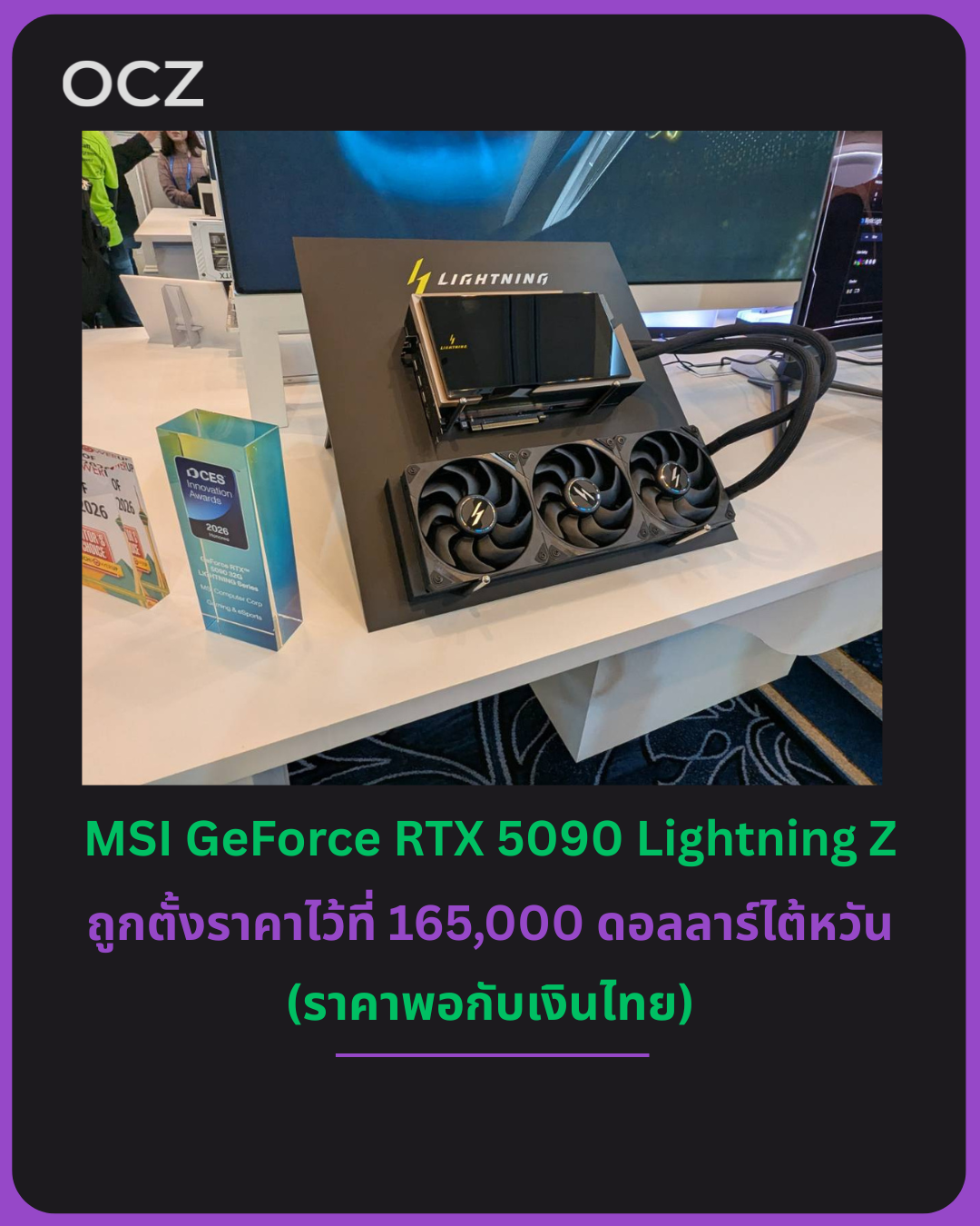 MSI GeForce RTX 5090 Lightning Z การ์ดจอที่แรงที่สุดของ MSI มาพร้อมราคาสุดโหดสมชื่อ โดยถูกตั้งราคาไว้ที่ 165,000 ดอลลาร์ไต้หวัน (NT$) หรือราว 5,200 ดอลลาร์สหรัฐ