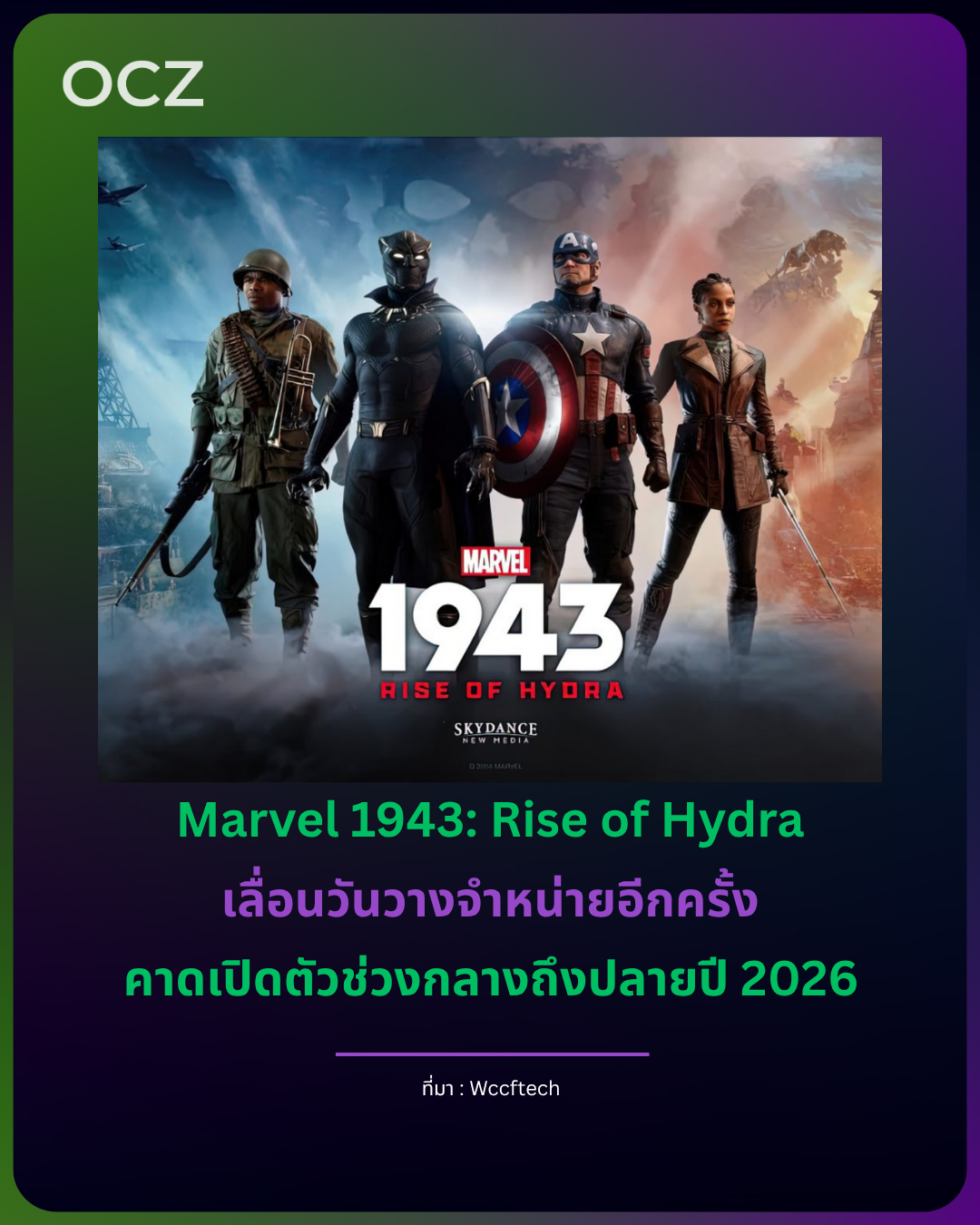 Skydance Games และ Amy Hennig ได้ประกาศเลื่อนเกม Marvel 1943: Rise of Hydra ออกไปอีกครั้ง โดยจะไม่สามารถวางจำหน่ายได้ในช่วงต้นปี 2026 ตามกำหนดเดิม