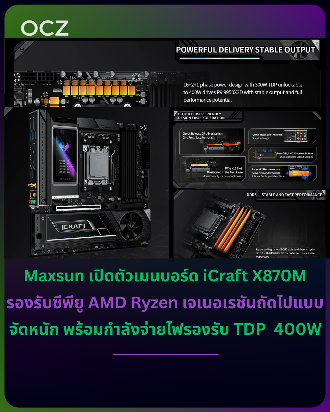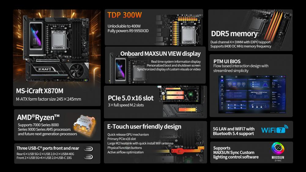 Maxsun iCraft X870M mATX — พร้อมสำหรับซีพียู AMD Ryzen รุ่นถัดไป รองรับ TDP ปลดล็อกสูงสุด 400W