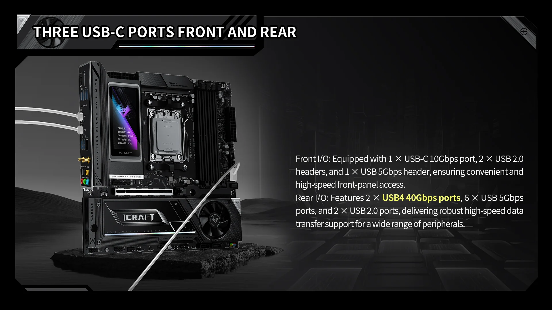 เมนบอร์ด iCraft X870M รุ่นใหม่ของ Maxsun ถือเป็นหนึ่งในดีไซน์ mATX ที่ทรงพลังที่สุดของค่าย มาพร้อมฟีเจอร์และสเปกระดับท็อปที่แตกต่างจากเมนบอร์ด mATX ทั่วไปอย่างเห็นได้ชัด