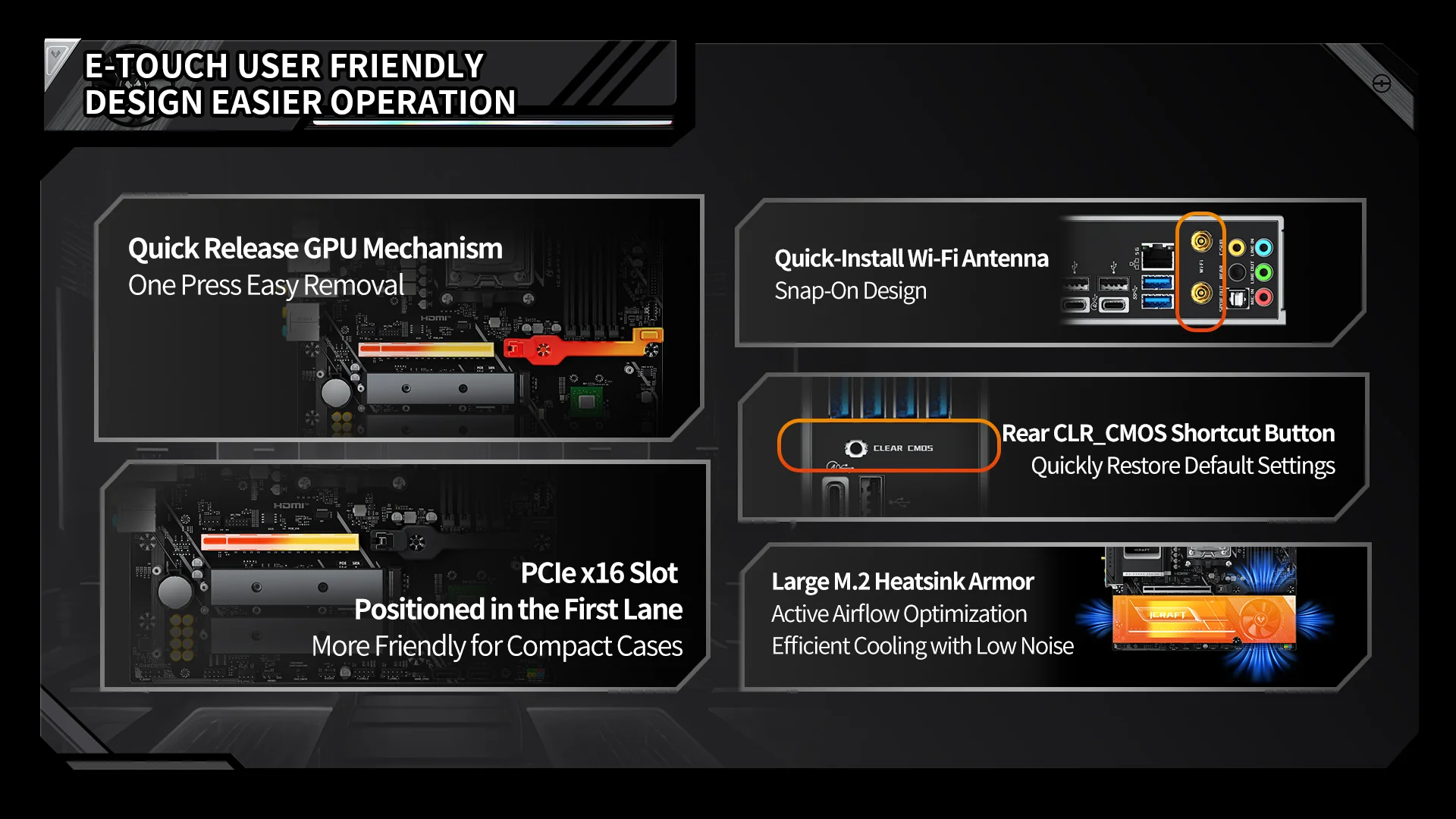 ด้านหน้าเสริมฮีตซิง + พัดลม PCH ช่วยลดความร้อนจาก GPU และชิปเซ็ต X870