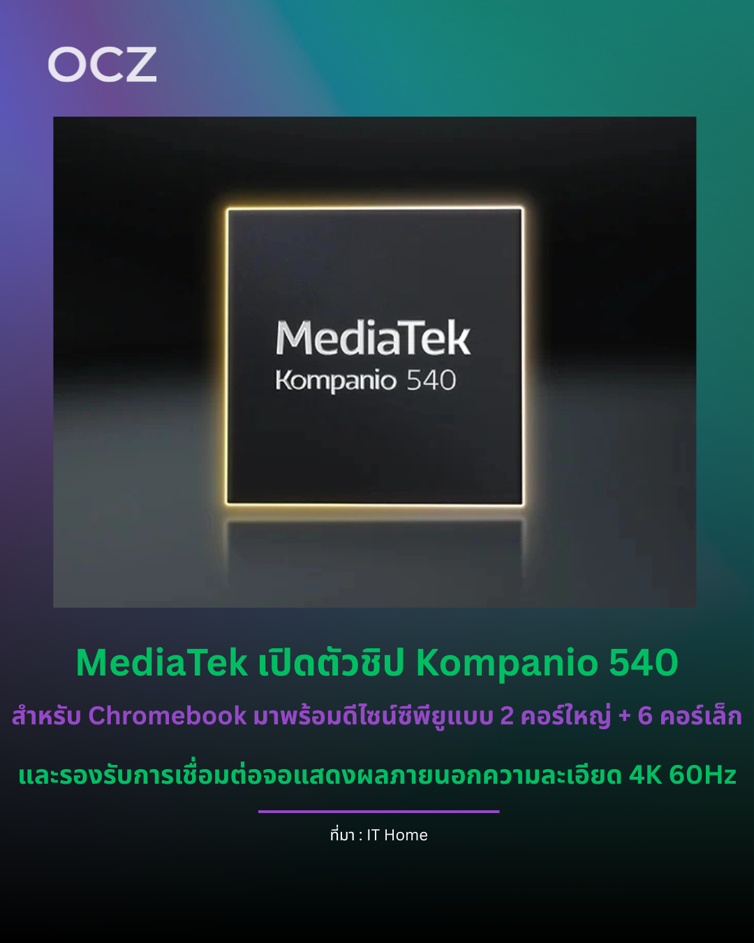 MediaTek ได้เปิดตัวชิป Kompanio 540 ซึ่งเป็นชิประดับเดสก์ท็อปสำหรับ Chromebook โดยมาพร้อม ซีพียู 8 คอร์, กราฟิกแบบ Mali-G57 แบบบูรณาการ, และรองรับการเชื่อมต่อไร้สายรุ่นใหม่อย่าง Wi-Fi 7 และ Bluetooth 6.0 คาดว่าจะเปิดให้ผู้บริโภคทั่วไปได้ใช้อย่างเป็นทางการในเดือน มกราคม 2026