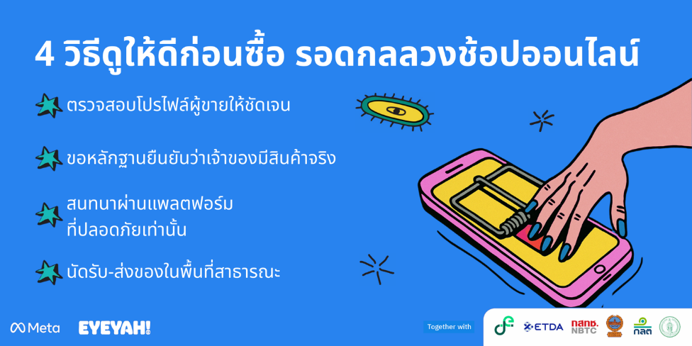 ในช่วงเวลาที่ช่องทางการซื้อขายออนไลน์เต็มไปด้วยข้อเสนอพิเศษต่าง ๆ คนไทยสามารถปกป้องตนเองจากการตกเป็นเหยื่อมิจฉาชีพออนไลน์ได้ง่าย ๆ โดย Meta แนะนำ 4 วิธีสำคัญที่ควรปฏิบัติทุกครั้งก่อนการตัดสินใจซื้อสินค้าออนไลน์