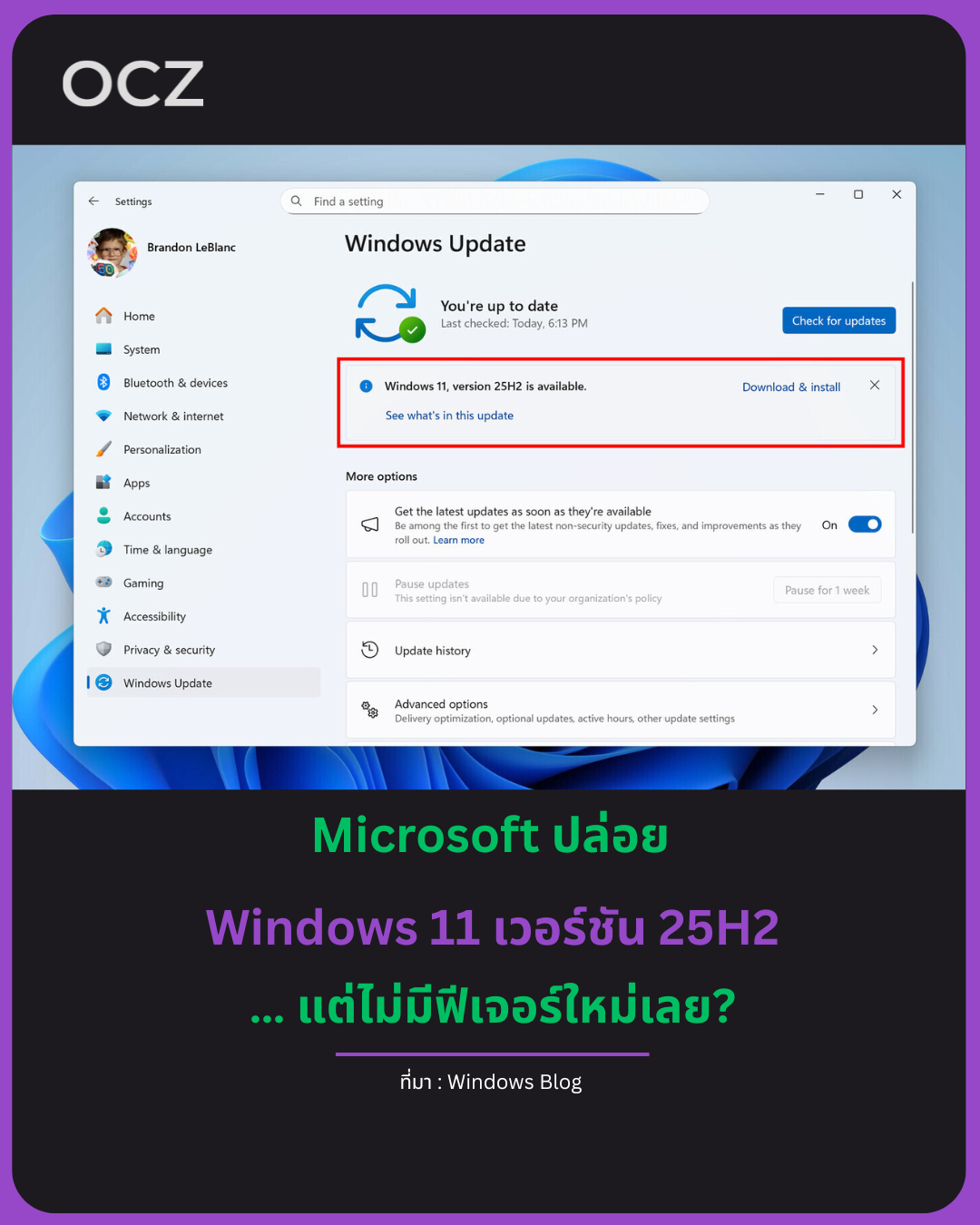 Microsoft เปิดตัว Windows 11 เวอร์ชัน 25H2 อย่างเป็นทางการ หลังจากทดสอบและปล่อยพรีวิวมาหลายเดือน