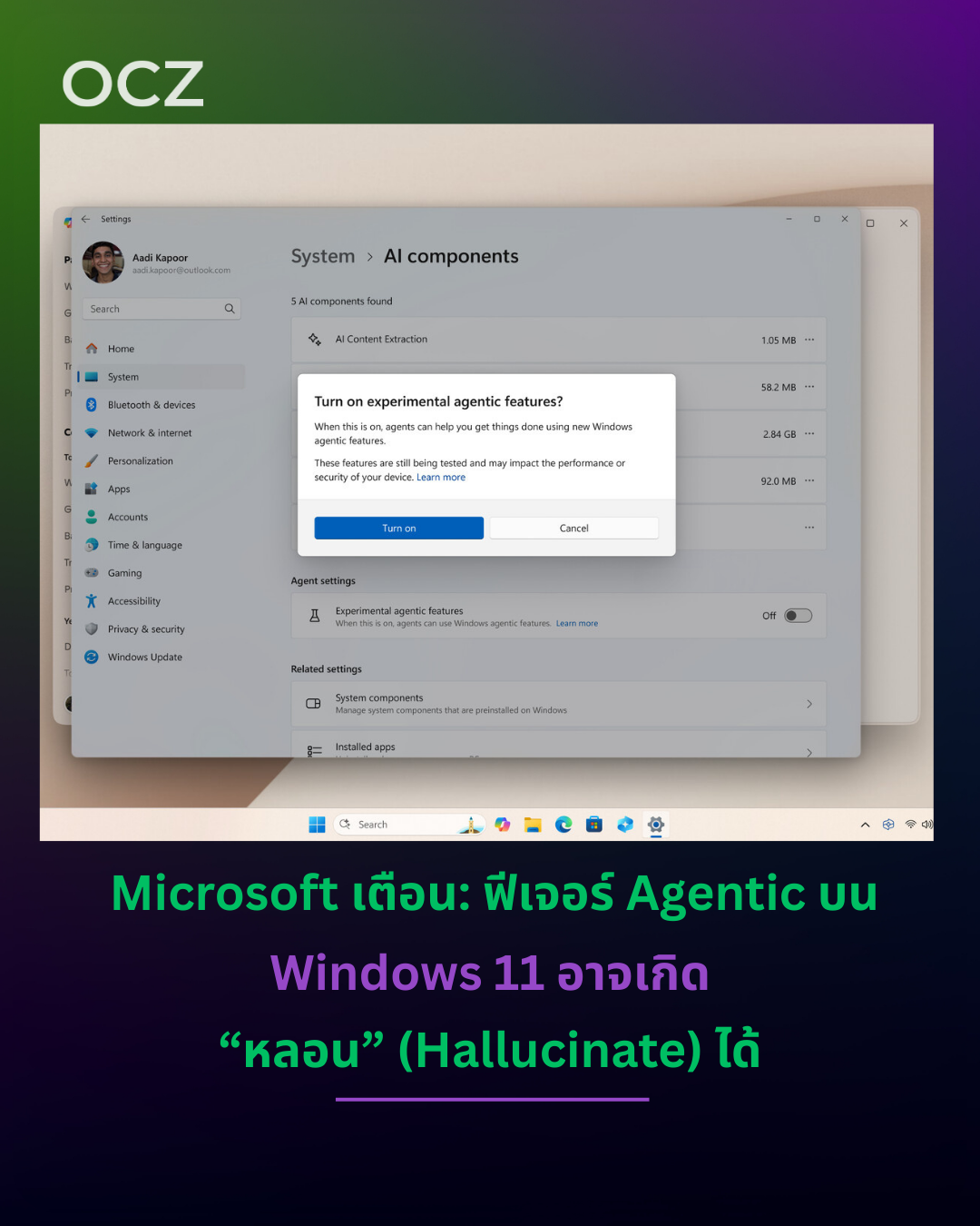 ไม่กี่วันที่ผ่านมา Microsoft ประกาศว่า Windows 11 กำลังจะมีการอัปเกรดครั้งใหญ่ในส่วนของ Agentic AI ซึ่งเป็นระบบที่ช่วยให้ Windows สามารถ “ลงมือทำงานแทนผู้ใช้” ในระดับคล้ายผู้ช่วยอัตโนมัติเต็มรูปแบบ อย่างไรก็ตาม บริษัทก็ออกคำเตือนทางอ้อมว่า การเปลี่ยนแปลงนี้อาจทำให้มี ช่องโหว่ด้านความปลอดภัย เปิดเผยมากขึ้น — และวันนี้ Microsoft ได้ออกประกาศเพิ่มเติมอีกครั้ง