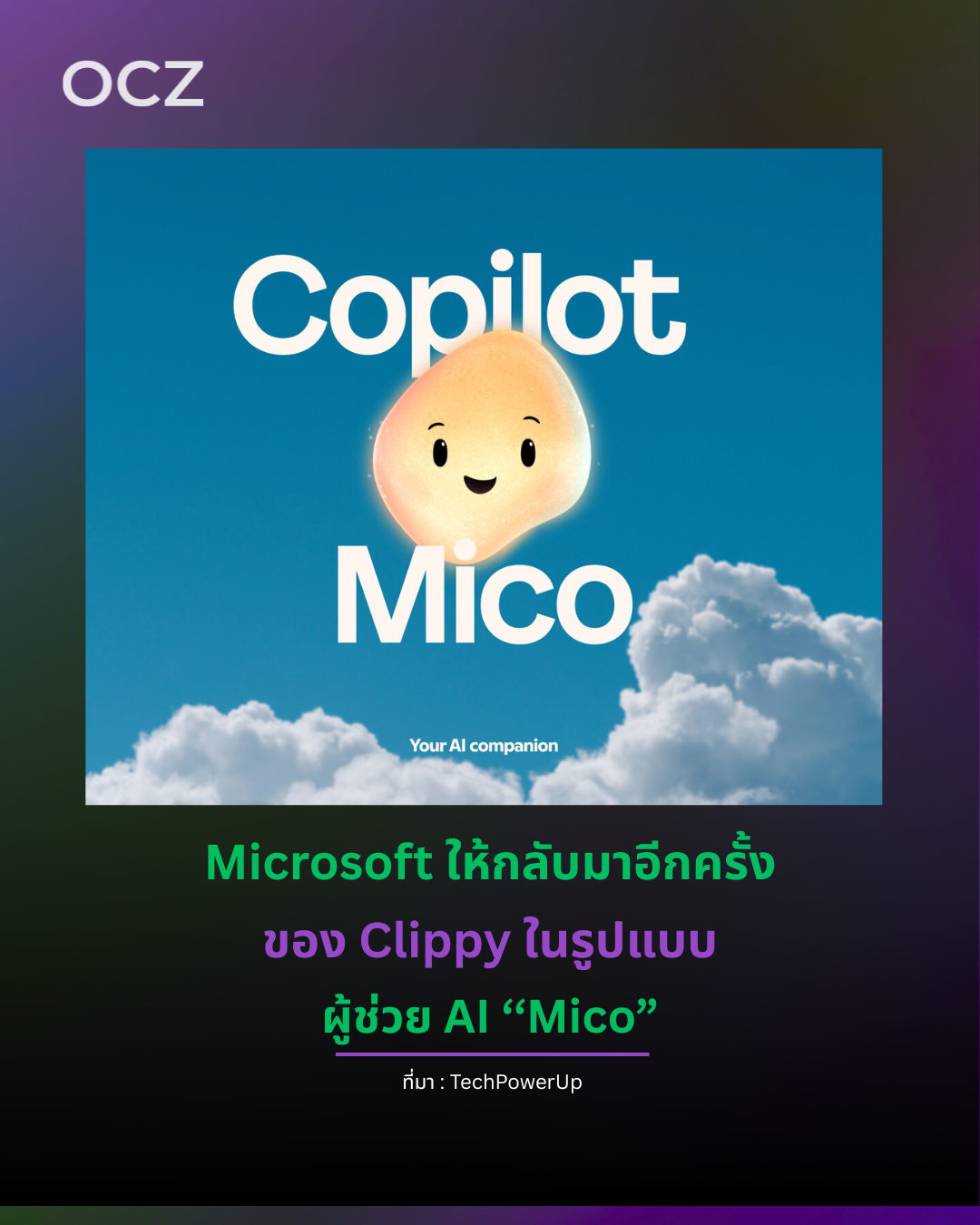 Microsoft เปิดตัว Mico ใบหน้าตัวใหม่สุดขี้เล่นของ Copilot ซึ่งมาในรูปแบบ “ลูกอสูรทรงกลมแอนิเมชัน” ที่เปลี่ยนรูปร่างได้ และจะปรากฏขึ้นเมื่อผู้ใช้พูดคุยกับผู้ช่วย AI ตัวนี้ ผู้ใช้บางคนอาจรู้สึกถึงกลิ่นอายของ Clippy ผู้ช่วยในตำนานเมื่อกว่า 30 ปีก่อน แต่ Microsoft ย้ำว่า Mico ถูกออกแบบมาให้ “ไม่กวนใจเหมือนยุค Clippy” โดยจะมีปฏิกิริยาโต้ตอบตามบทสนทนา แทนการเด้งขึ้นมาขัดจังหวะ