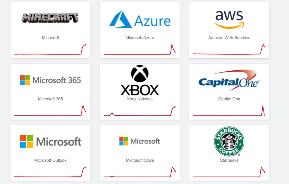 บริการที่ได้รับผลกระทบได้แก่ แพลตฟอร์ม Xbox ทั้งระบบ, Minecraft, และชุดโปรแกรม Microsoft 365 ซึ่งครอบคลุมถึงบริการบนเว็บอย่าง Teams, Word, Excel, PowerPoint, Outlook, OneNote, Defender, OneDrive, Designer, Clipchamp และ SharePoint โดยหลายบริการไม่สามารถใช้งานได้ชั่วคราว และบางส่วนล่มไปทั้งหมด