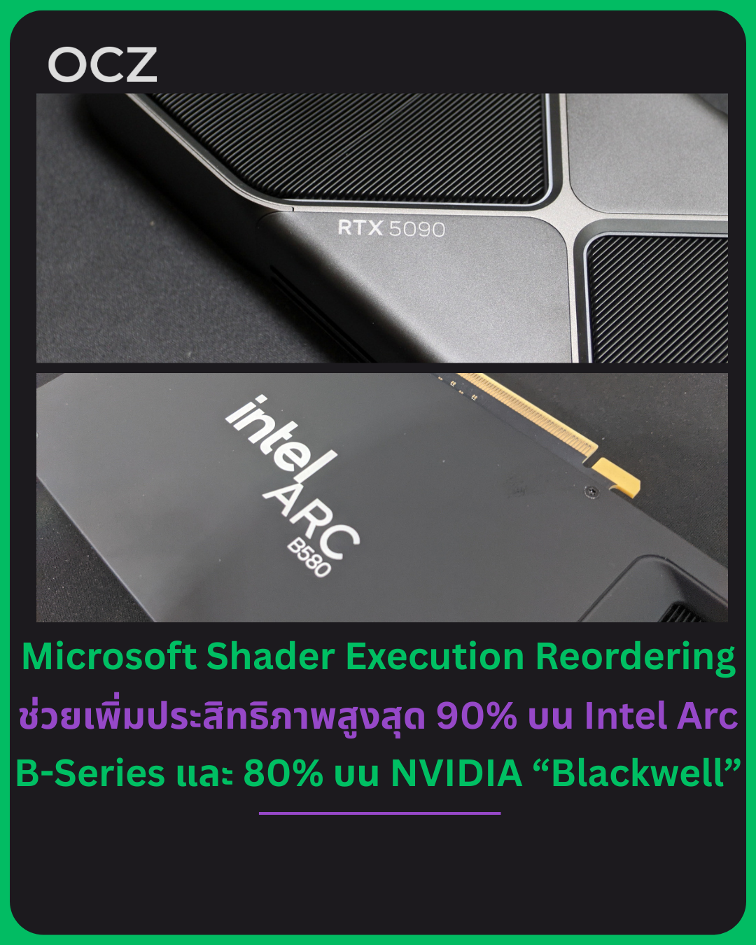 อย่างไรก็ตาม ไฮไลต์สำคัญคือเดโมเทคโนโลยี Shader Execution Reordering (SER) ล่าสุด ที่แสดงให้เห็นถึงการเพิ่มประสิทธิภาพอย่างมหาศาลบนการ์ดจอหลายรุ่น โดยทำได้สูงสุดถึง 90% บน Intel Arc B-Series และมากกว่า 80% บนการ์ดจอ NVIDIA สถาปัตยกรรม “Blackwell” จากผลทดสอบอิสระ