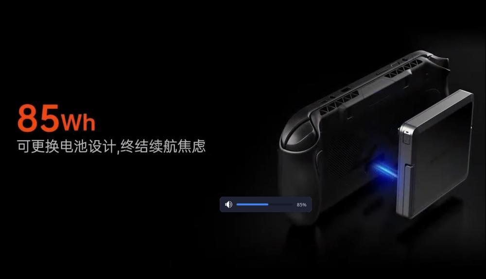 พลังทั้งหมดมาจาก แบตเตอรี่ภายนอก 85Wh ที่ดีไซน์คล้ายกับ “piggyback battery” ของ GPD Win 5