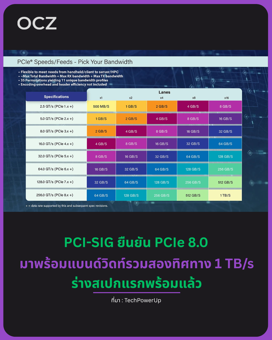 PCI-SIG ประกาศพัฒนา PCIe 8.0: ความเร็ว 256 GT/s, แบนด์วิดท์แตะ 1 TB/s เต็มช่อง x16