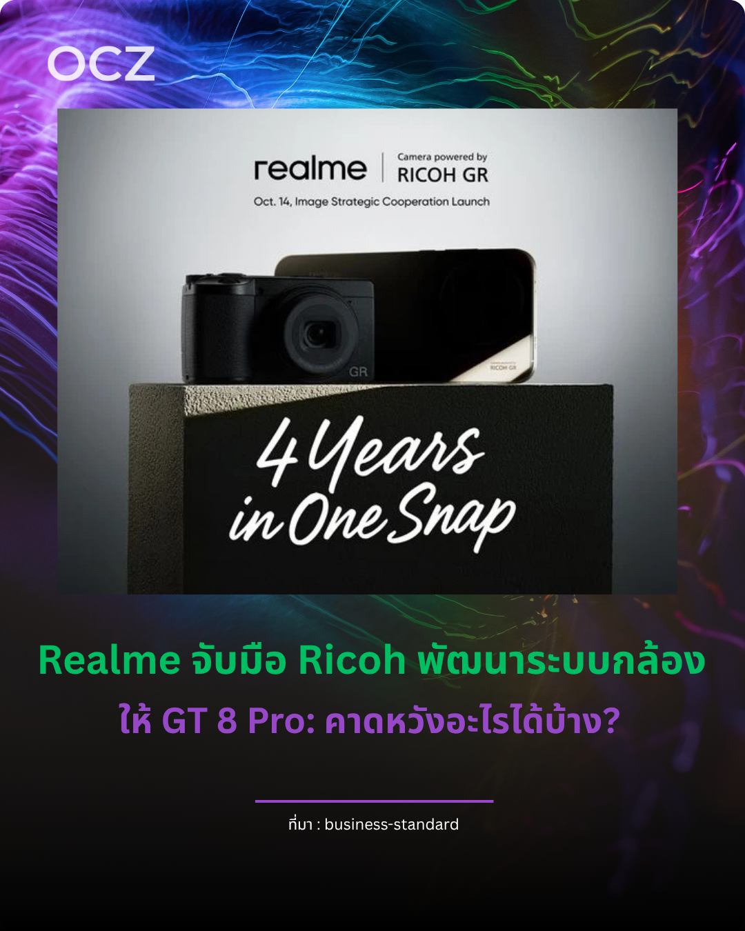 นอกจากนี้ Realme ยังเผยว่าจะจัดงานอีเวนต์ในวันที่ 14 ตุลาคม ชื่อว่า “Image Strategic Cooperation” เพื่อเปิดเผยรายละเอียดเพิ่มเติมเกี่ยวกับความร่วมมือครั้งนี้ โดยในตอนนี้ GT 8 Pro เป็นรุ่นเดียวที่ยืนยันแล้วว่าจะได้ใช้ระบบกล้องที่พัฒนาร่วมกับ Ricoh แต่คาดว่าในอนาคต สมาร์ตโฟนระดับไฮเอนด์รุ่นอื่นของ Realme ก็จะได้รับประโยชน์จากดีลนี้เช่นกัน