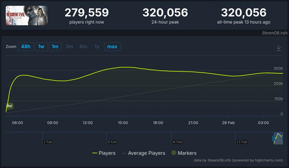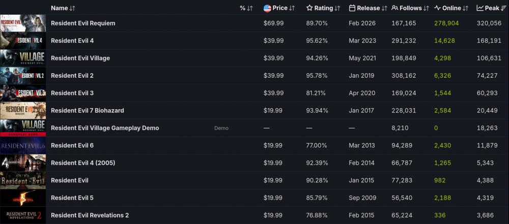 ด้วยตัวเลขดังกล่าว ทำให้เกมนี้กลายเป็น Resident Evil ที่ประสบความสำเร็จสูงสุดบน Steam แซงหน้ารองแชมป์อย่าง Resident Evil 4 แบบเกือบ 100% และนำหน้า Resident Evil Village อยู่ถึง 114,000 คน
