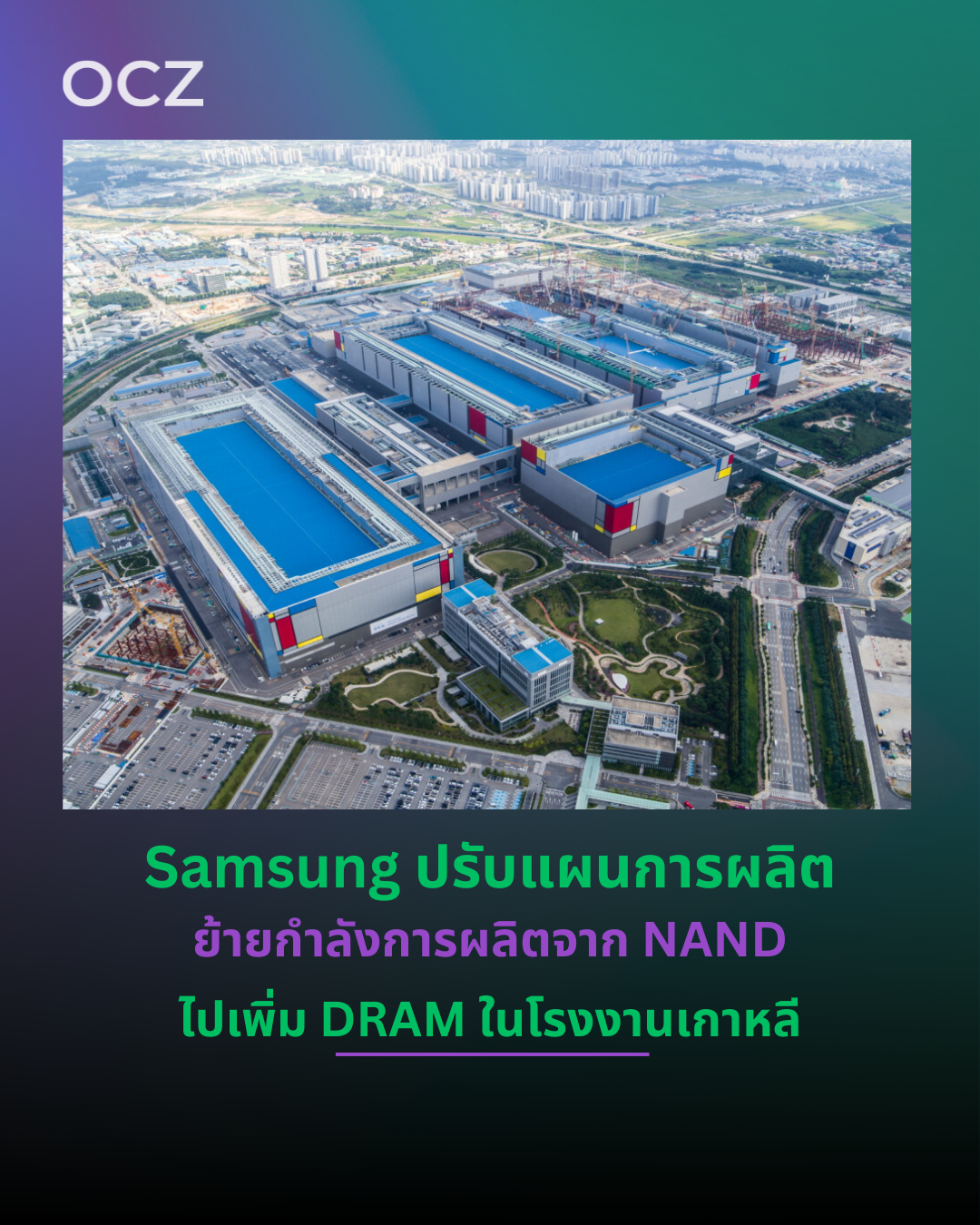 ตามรายงานจากอุตสาหกรรมเกาหลีที่อ้างโดย SE Daily ระบุว่า Samsung มีแผนจะปรับไลน์การผลิตบางส่วนจาก NAND Flash ไปเป็น DRAM ในโรงงาน Pyeongtaek และ Hwaseong นอกจากนี้ โรงงานใหม่ Pyeongtaek Fab 4 (P4) ที่กำลังจะเปิดใช้งาน จะถูกตั้งค่าให้เป็นไลน์ผลิต DRAM เพียงอย่างเดียว โดยใช้กระบวนการผลิตรุ่นล่าสุดอย่าง “1c process”