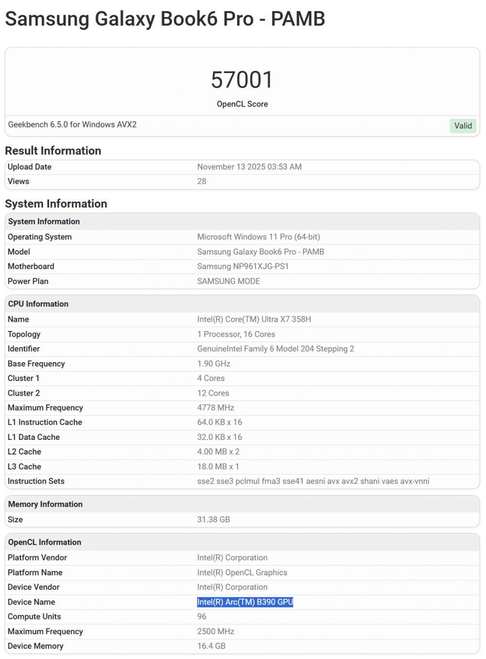 แม้คะแนน OpenCL จะยังไม่ควรนำมาสรุปประสิทธิภาพโดยตรง แต่ผลที่หลุดออกมานั้นใกล้เคียงกับกราฟิกแยกระดับ GeForce GTX 1650 Ti Laptop ถึง RTX 3050 Laptop GPU ซึ่งถือว่าทำได้ดีมากสำหรับกราฟิกแบบรวม (Integrated Graphics) แต่ก็ยังไม่ถึงขั้น “High-end”
