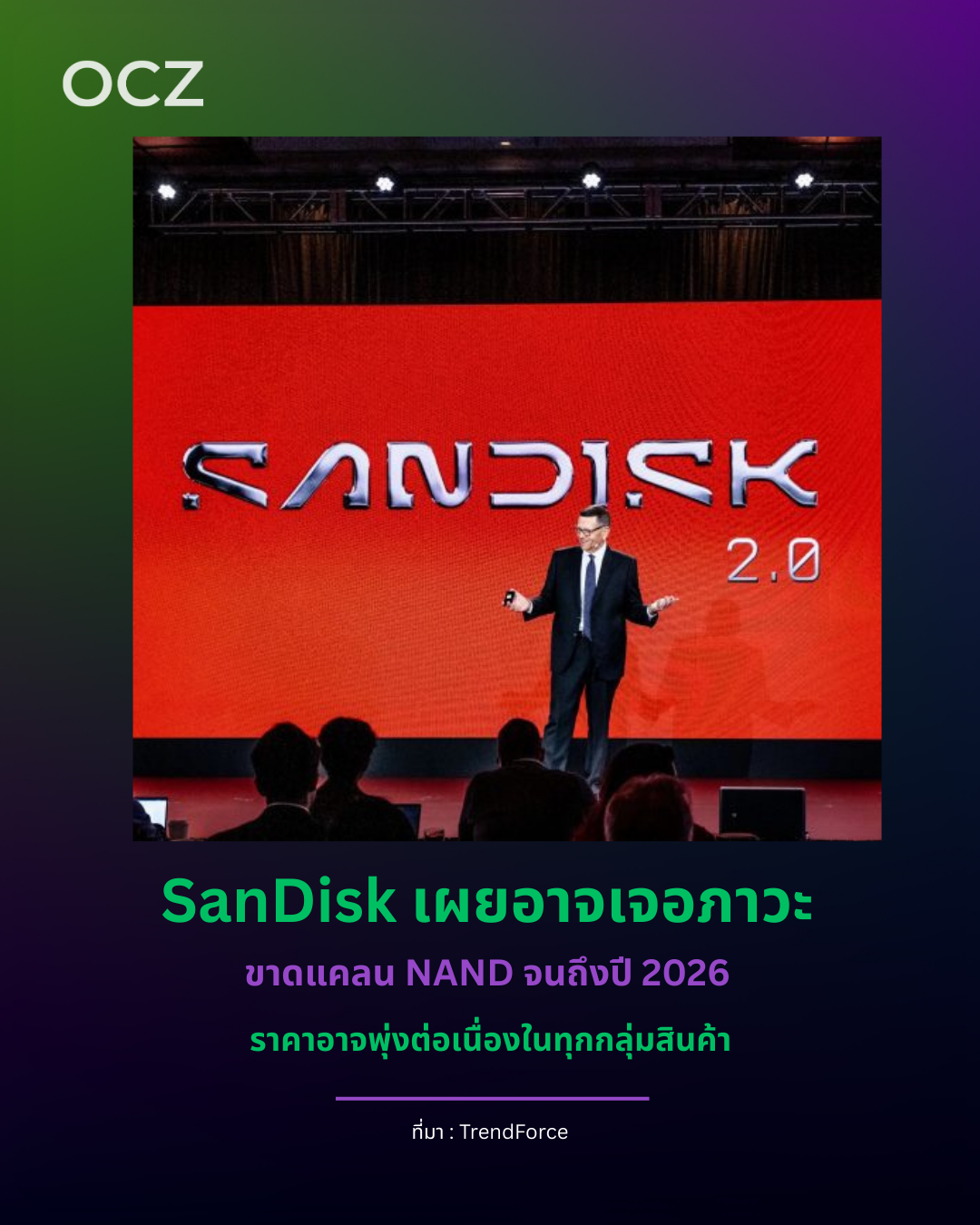 SanDisk คาดตลาด NAND ขาดแคลนต่อเนื่องถึงปี 2026 — พร้อมปรับขึ้นราคาอีกรอบจากดีมานด์ศูนย์ข้อมูลและ AI ที่พุ่งแรง