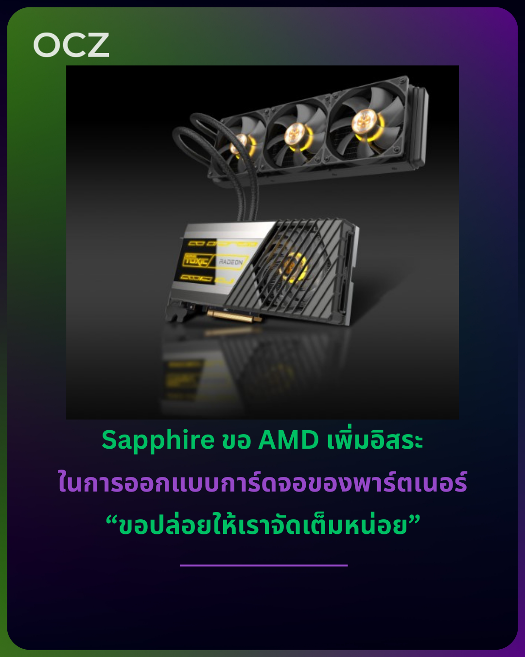 สำหรับซีรีส์ Toxic ซึ่งเป็นไลน์สุดขั้วของ Sapphire เขาบอกว่าบริษัทพิจารณานำกลับมาทุกเจเนอเรชัน แต่ถ้าจะทำ ต้องเป็นการ์ดระดับสุดจริง ทั้งความเร็วสูง ระบบระบายความร้อนหนัก และดีไซน์ที่โดดเด่นกว่า Nitro+ ปัญหาคือต้นทุน การ์ดระดับท็อปที่คัดชิปดี โอเวอร์คล็อกแรง เงียบ และอัปเกรดภาคจ่ายไฟ อาจทำให้ราคาขยับขึ้นอีกราว 150 ดอลลาร์ ซึ่งต้องชั่งใจว่าตลาดจะยอมรับหรือไม่
