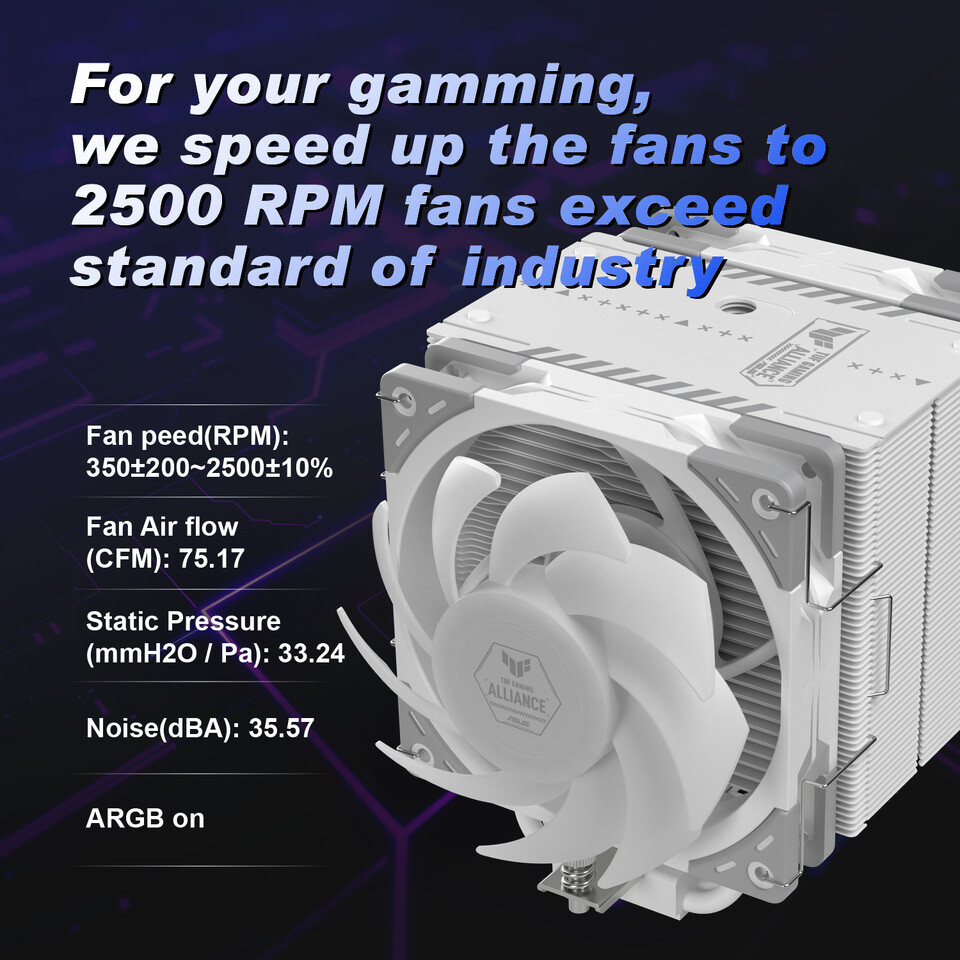 อย่างไรก็ตาม จุดที่น่าแปลกคือ บนตัวฮีตซิงก์และพัดลม Wonder Tornado กลับไม่ปรากฏโลโก้ Scythe เลย ซึ่งหวังว่าจะมีการใส่เครดิตแบรนด์ไว้บนแพ็กเกจจำหน่ายจริงของ Mugen 6 X ASUS TUF ALLIANCE อย่างน้อยก็ในขั้นสุดท้าย.