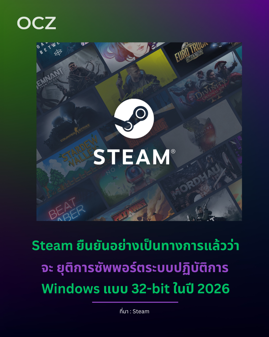 เริ่มตั้งแต่ 1 มกราคม 2026 เป็นต้นไป Steam จะ หยุดการสนับสนุนระบบที่ยังใช้ Windows เวอร์ชัน 32-bit